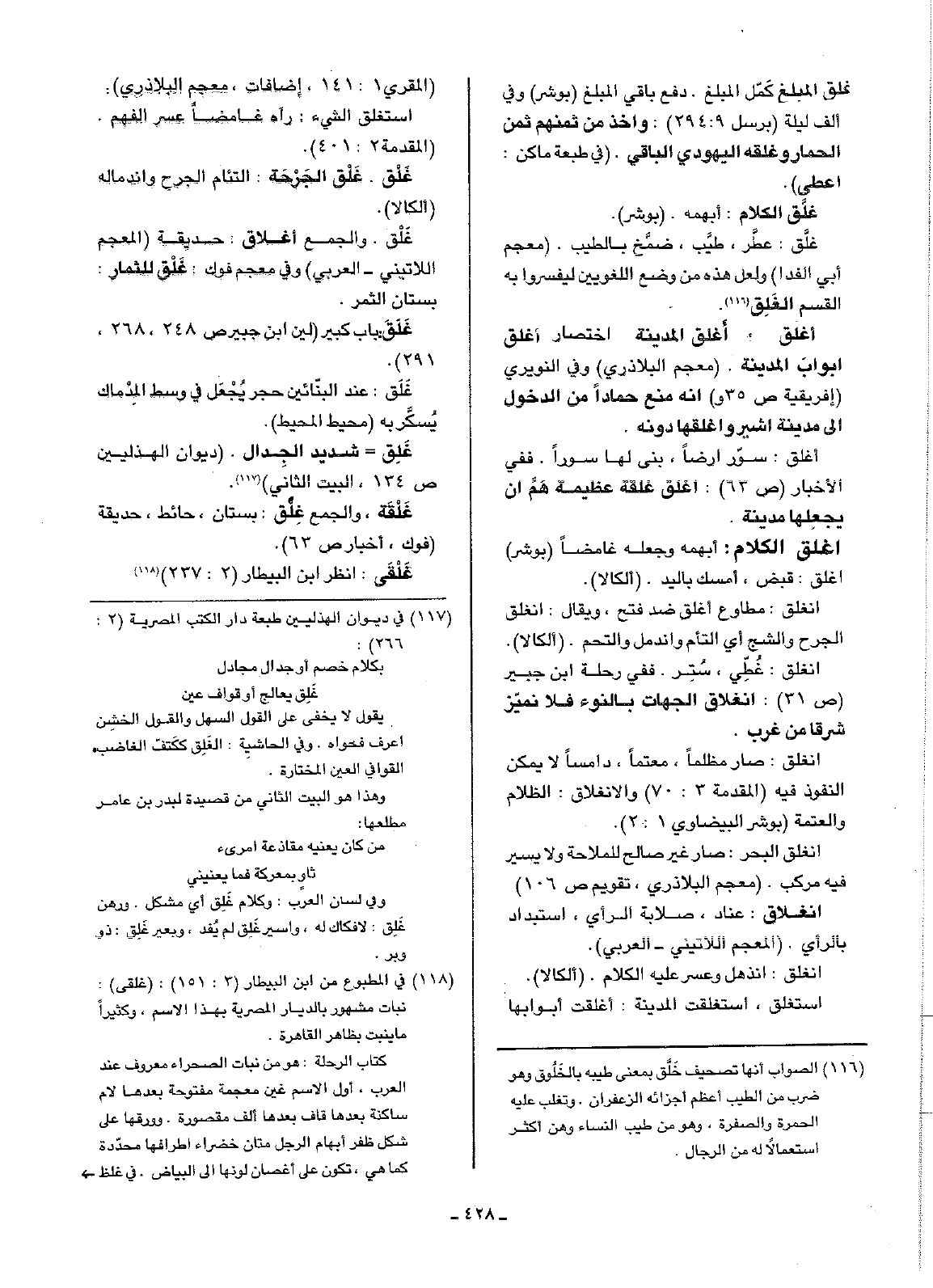 غلق المبلغ كَمّل المبلغ. دفع باقي المبلغ (بوشر) وفي ألف ليلة (برسل 9: 294): وآخذ من ثمنهم ثمن الحمار وغلقه اليهودي الباقي. (في طبعة ماكن: أعطى).