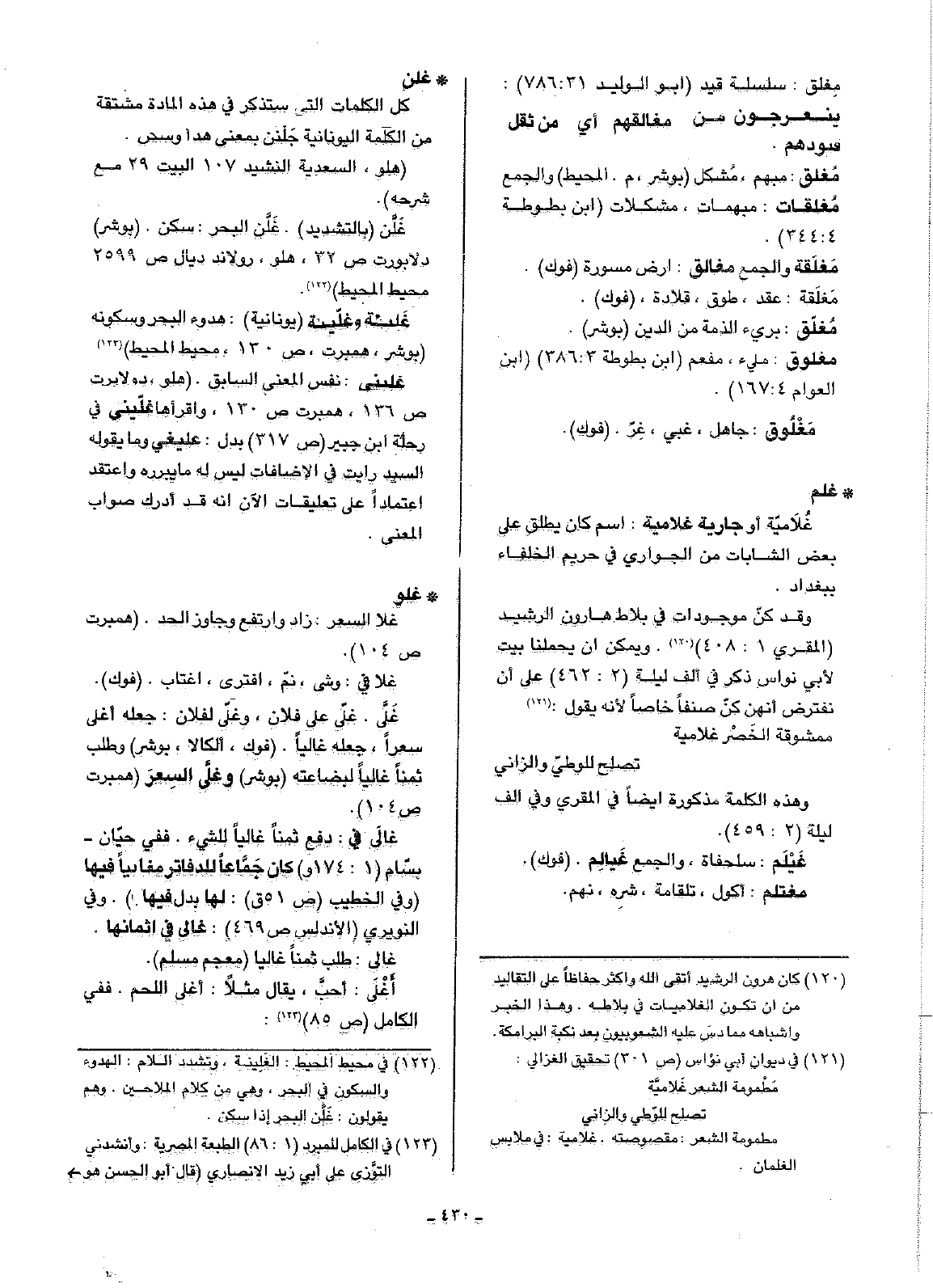 • غلم: غُلاَميّة أو جارية غلامية: اسم كان يطلق على بعض الشابات من الجواري في حريم الخلفاء ببغداد.