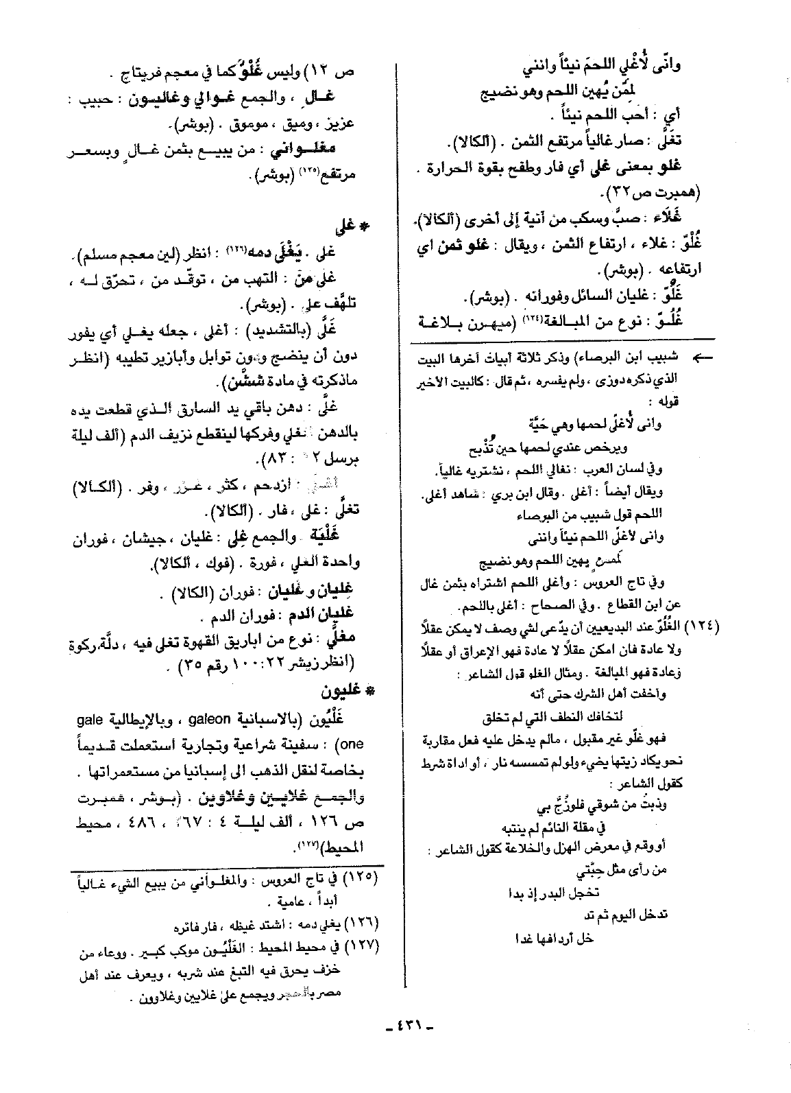 غُلُوّ: نوع من المبالغة (ميهرن بلاغة ص12) وليس غُلْوَّ كما في معجم فريتاج.