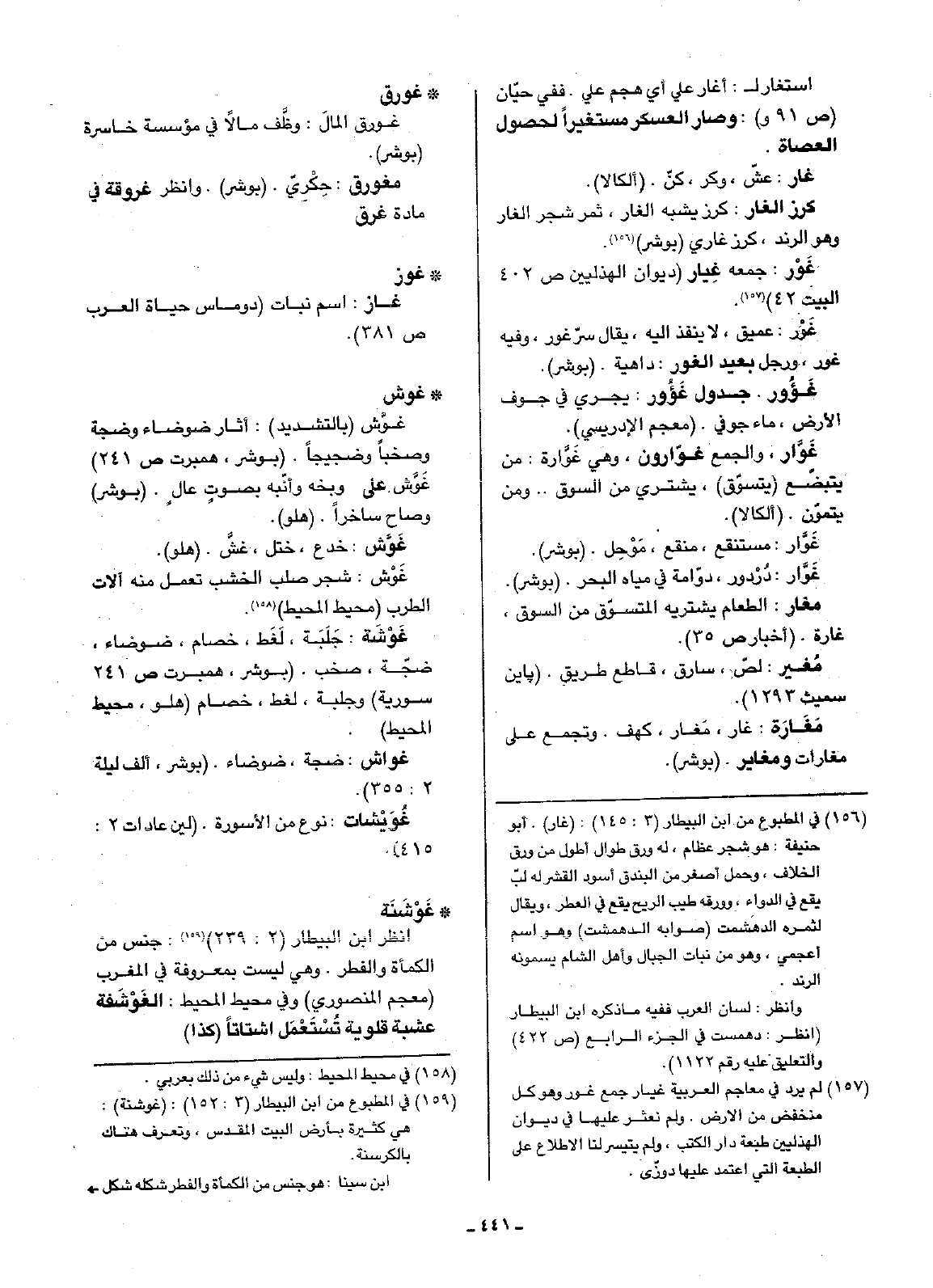 • غَوْشَنَة: انظر ابن البيطار (2: 239): جنس من الكمأة والفطر. وهي ليست بمعروفة في المغرب (معجم المنصوري) وفي محيط المحيط: الغَوْشَفة عشبة قلوية تُسْتَعْمَل أشتاتاً (كذا).