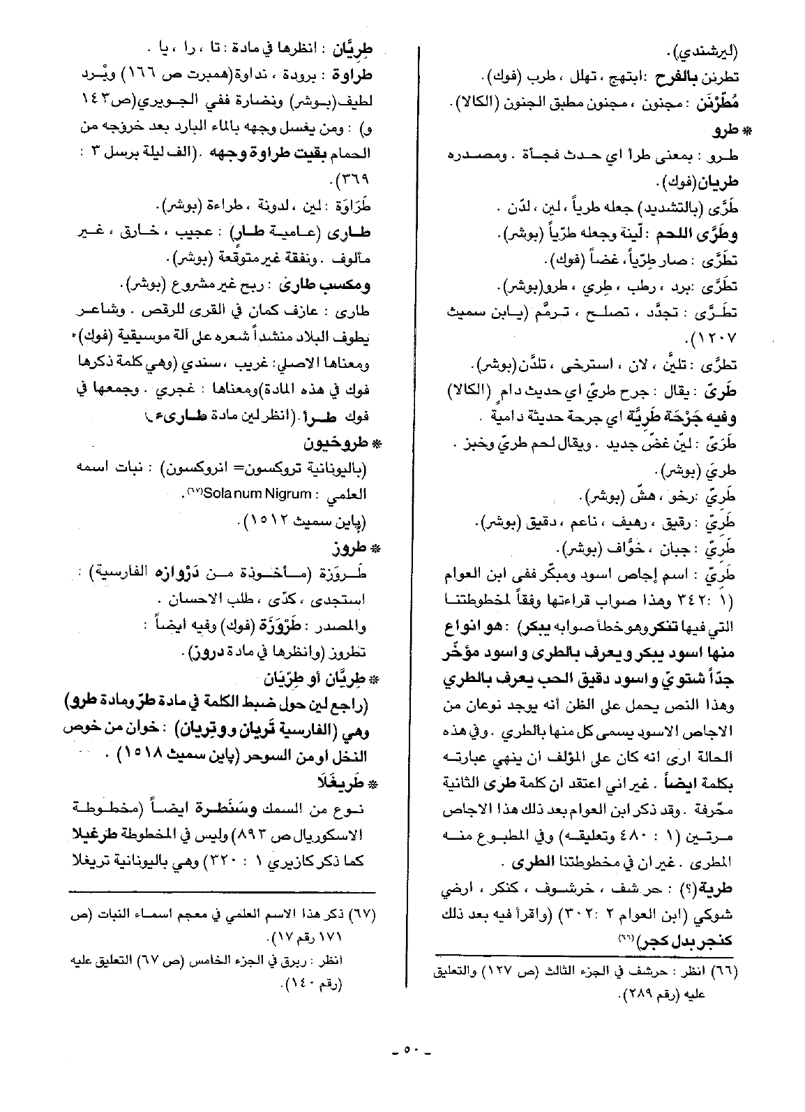 • طرو: طرو: بمعنى طرأ أي حدث فجأة. ومصدره طريان (فوك).