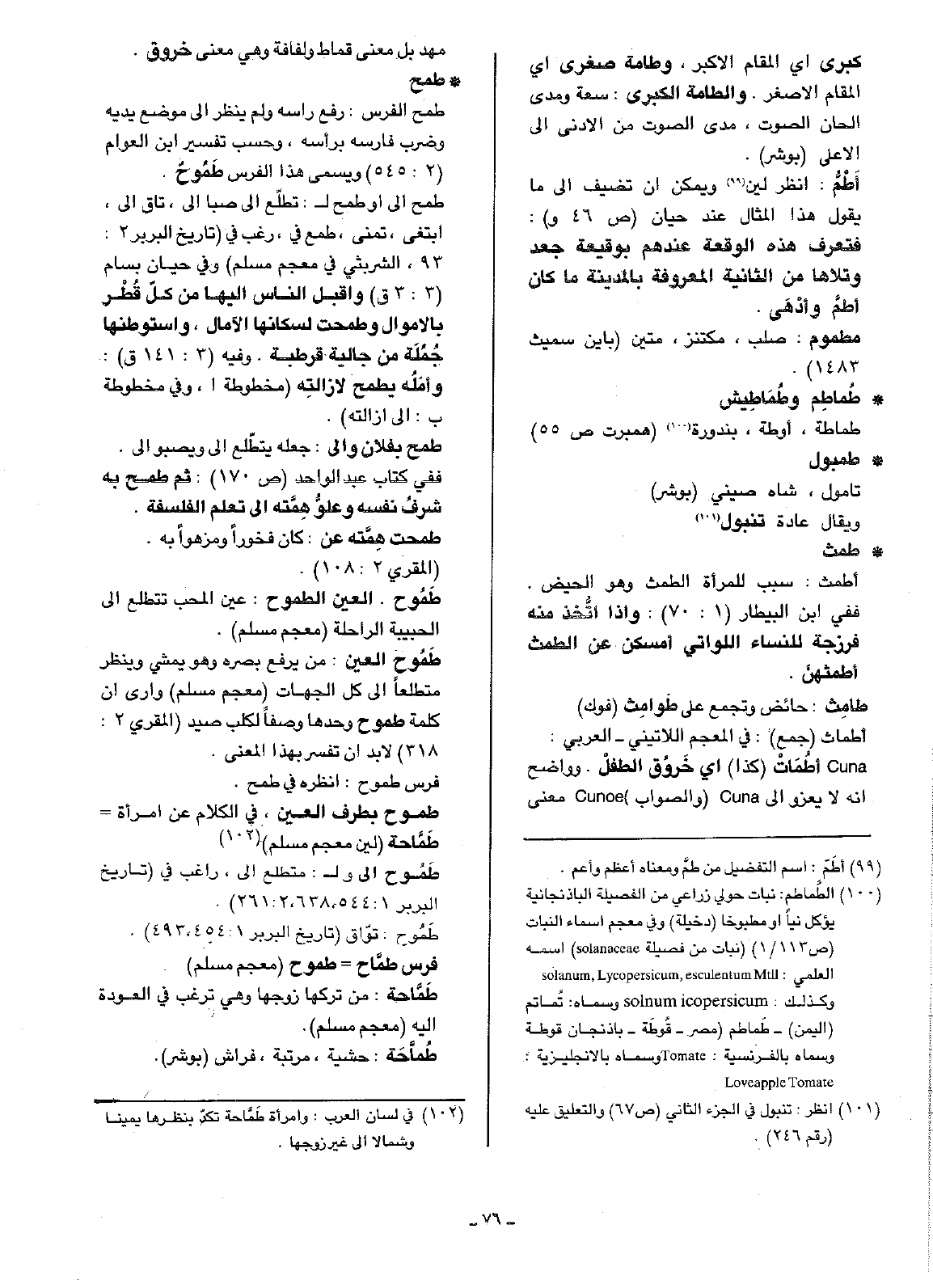 • طُماطِم وطُمَاطِيش: طماطة، أوطة، بندورة (همبرت ص55)