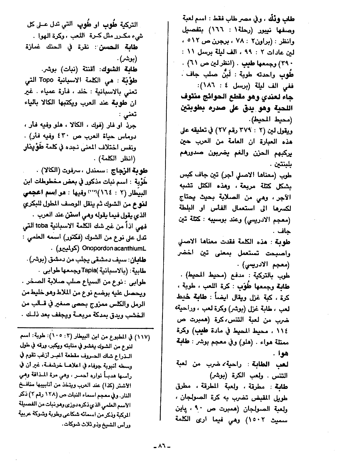 فهي إذاً من غير شك الكلمة الأسبانية toba التي تدل على نوع من الشوك (فكتور) اسمه العلمي: Onopordon ( كولمييرو).