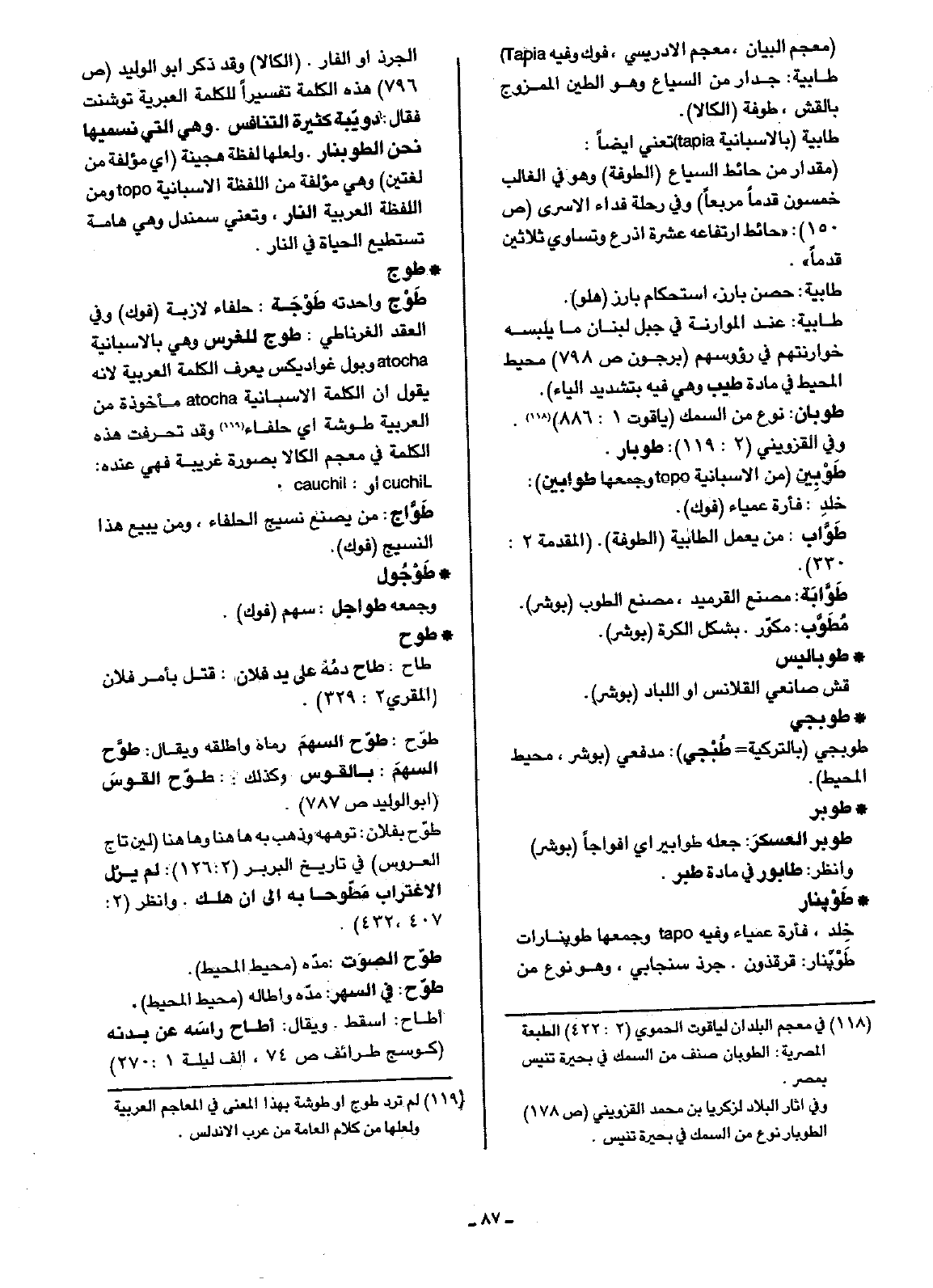 (معجم البيان، معجم الادريسي، فوك وفيه Tapia) .