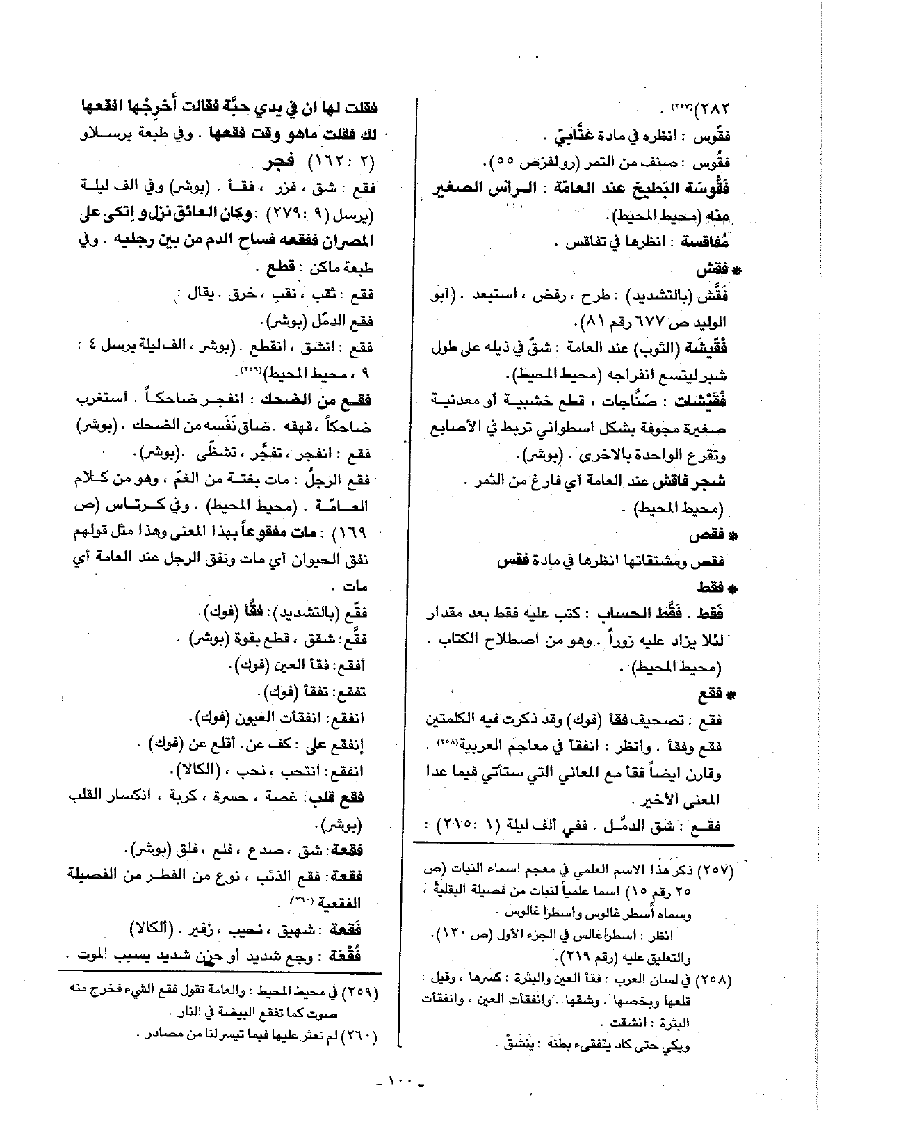 • فقع: فقع: تصحيف فقأ (فوك) وقد ذكرت فيه الكلمتين فقع وفقأ, ولنظر: انفقأ في معاجم العربية. وقارن أيضا فقأ مع المعاني التي ستأتي فيما عدا المعنى الأخير.
