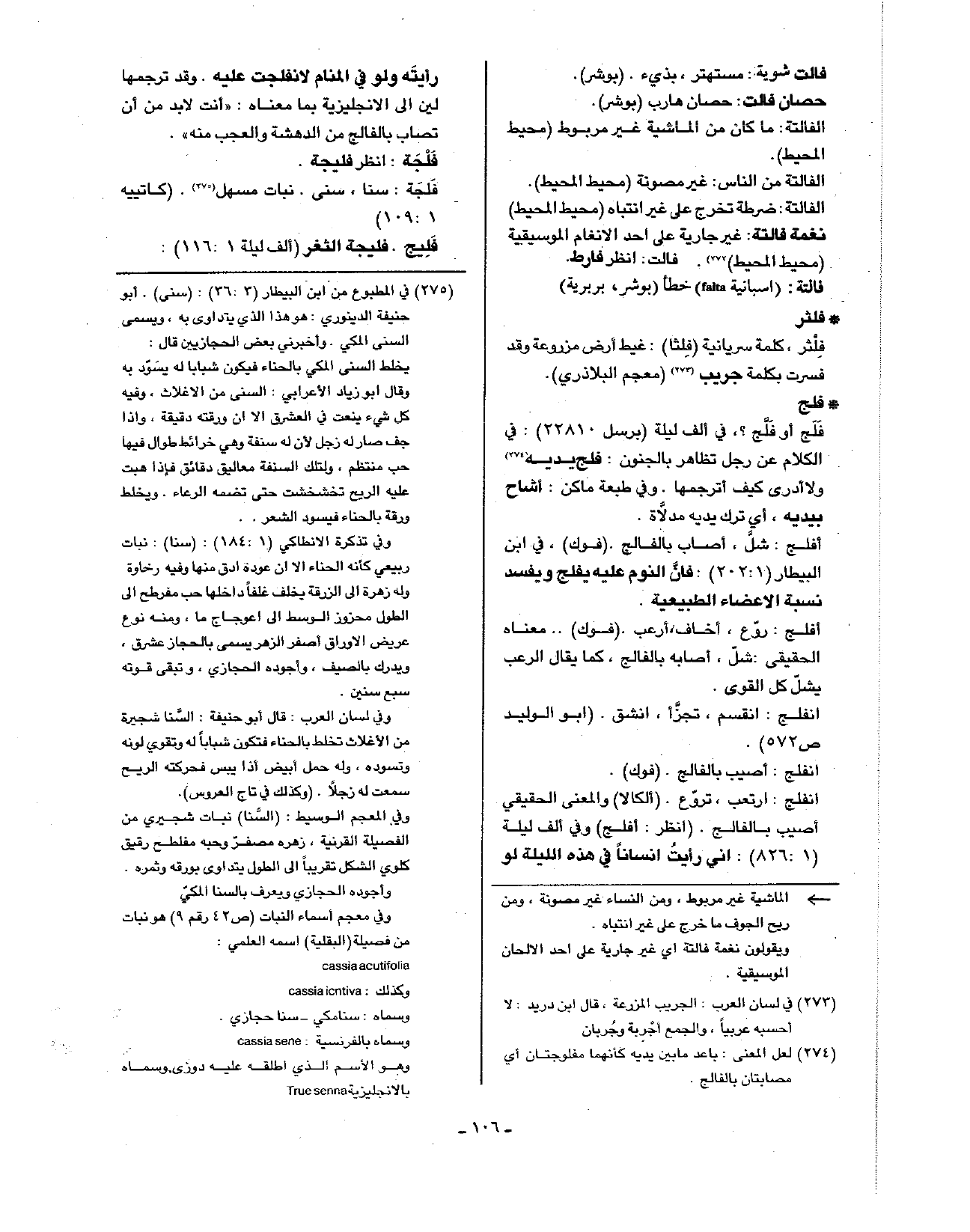 فلجة: سنا، سنى. نبات مسهل. (كاتتيه 1: 109).