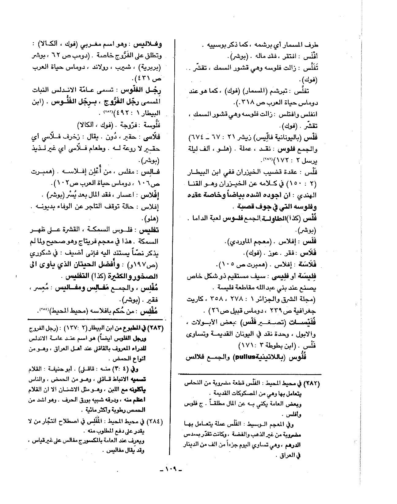 فلس (باليونانية فاليس) زيشر 21: 67 - 674) والجمع فلوس: نقد، عملة. (هلو، ألف ليلة برسل 2: 172).