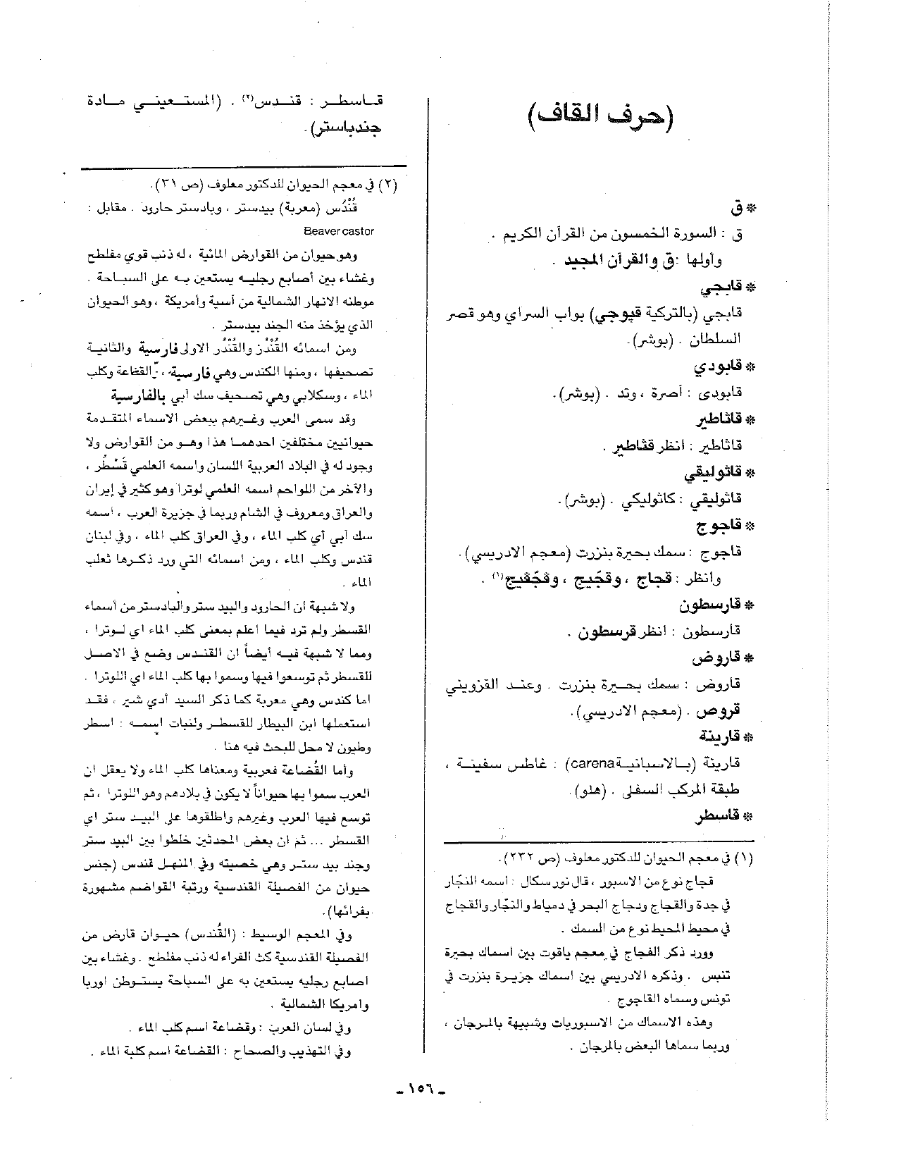 • قاسطر: قاسطر: قندس. (المستعيني مادة جندباستر).