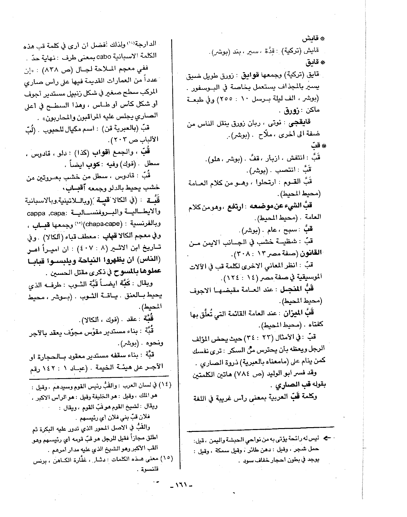 وقد فسر أبو الوليد (ص784) هاتين الكلمتين بقوله قب الصاري.