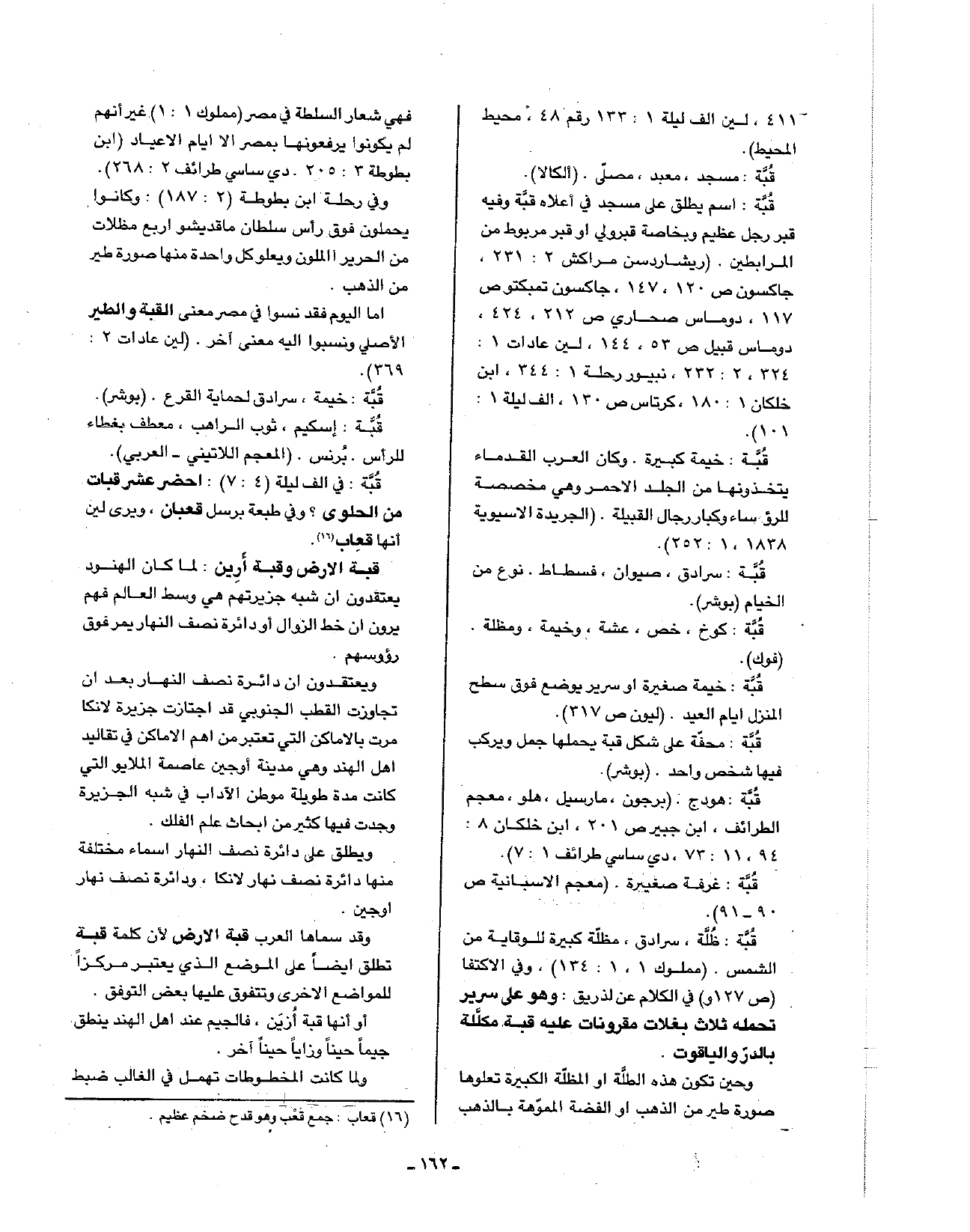 قبة: هودج. (برجون، مارسيل، هلو، معجم الطرائف، ابن جبير ص201، ابن خلكان 8: 94، 11: 73، دي ساسي طرائف 1: 7).