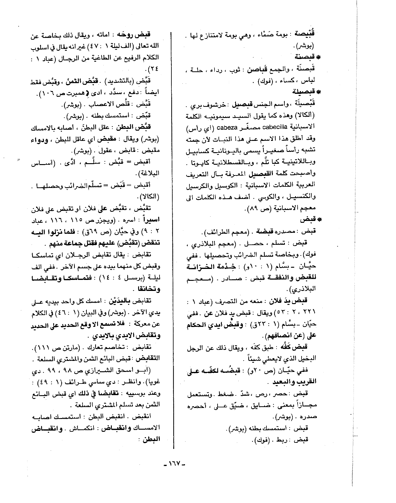 تقابض: يقال تقابض الرجلان أي تماسكا وقبض كل منهما بيده على جسم الآخر. ففي ألف ليلة (برسل 4: 14): فتماسكا وتقابضا وتخانقا.