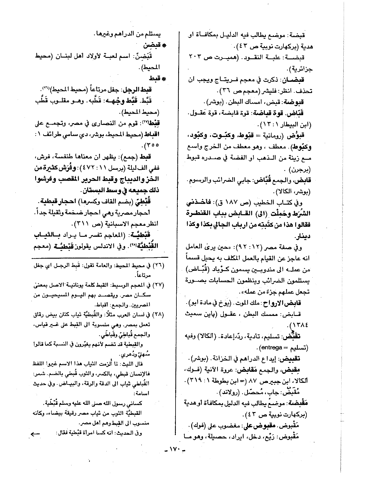 قبضان: ذكرت في معجم فريتاج ويجب أن تحذف. انظر: فليشر (معجم ص36).