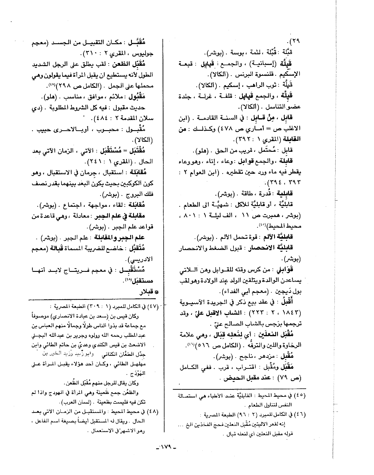 مقبل ومقبل: اقتراب، قرب. ففي الكامل (ص79): عند مقبل الحيض.