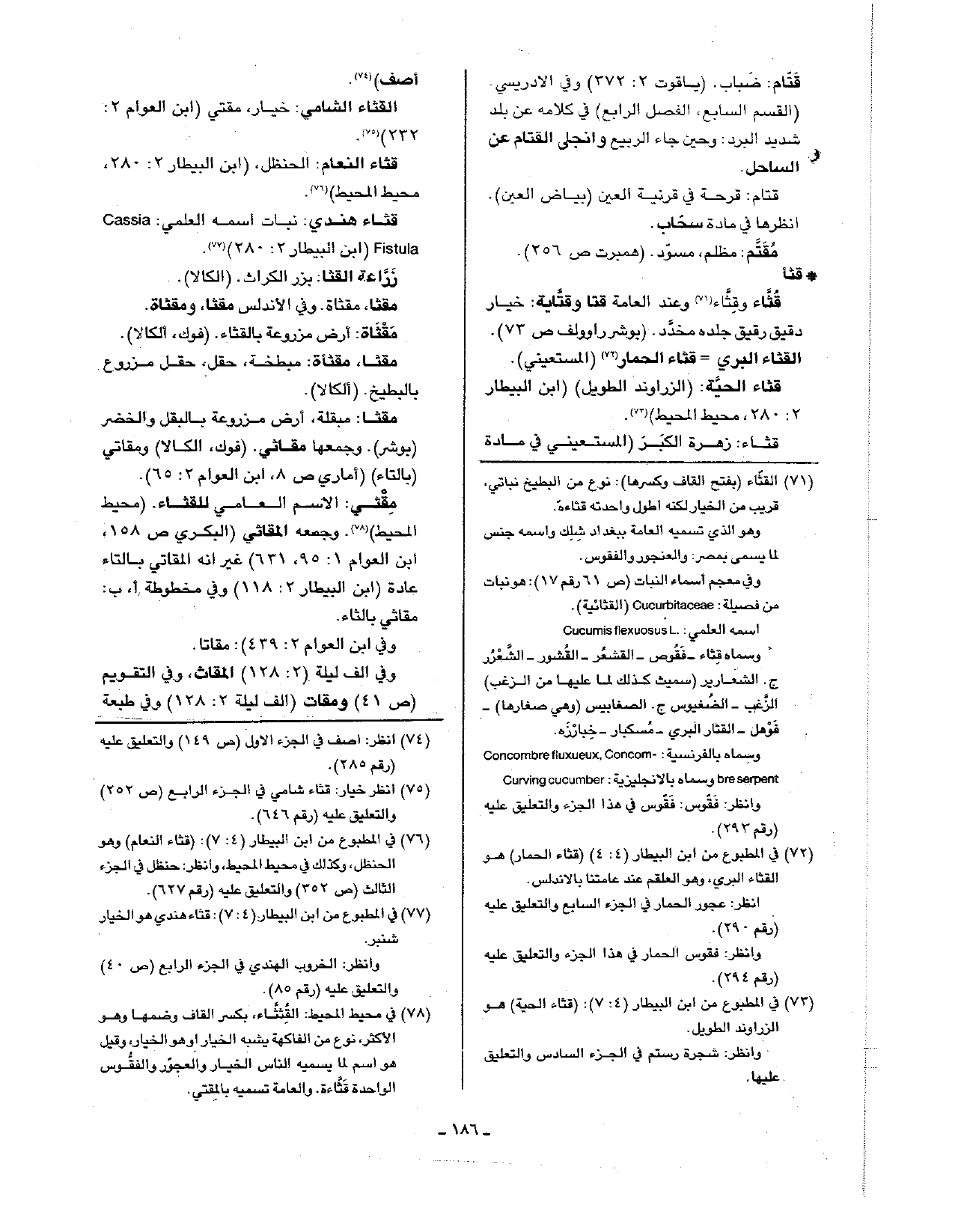 مقثي: الاسم العامي للقثاء. (محيط المحيط). وجمعه المقاثي (البكري ص158، ابن العوام 1: 95، 631) غير إنه المقاتي بالتاء عادة (ابن البيطار 2: 118) وفي مخطوطة أ، ب: مقاثي بالثاء.