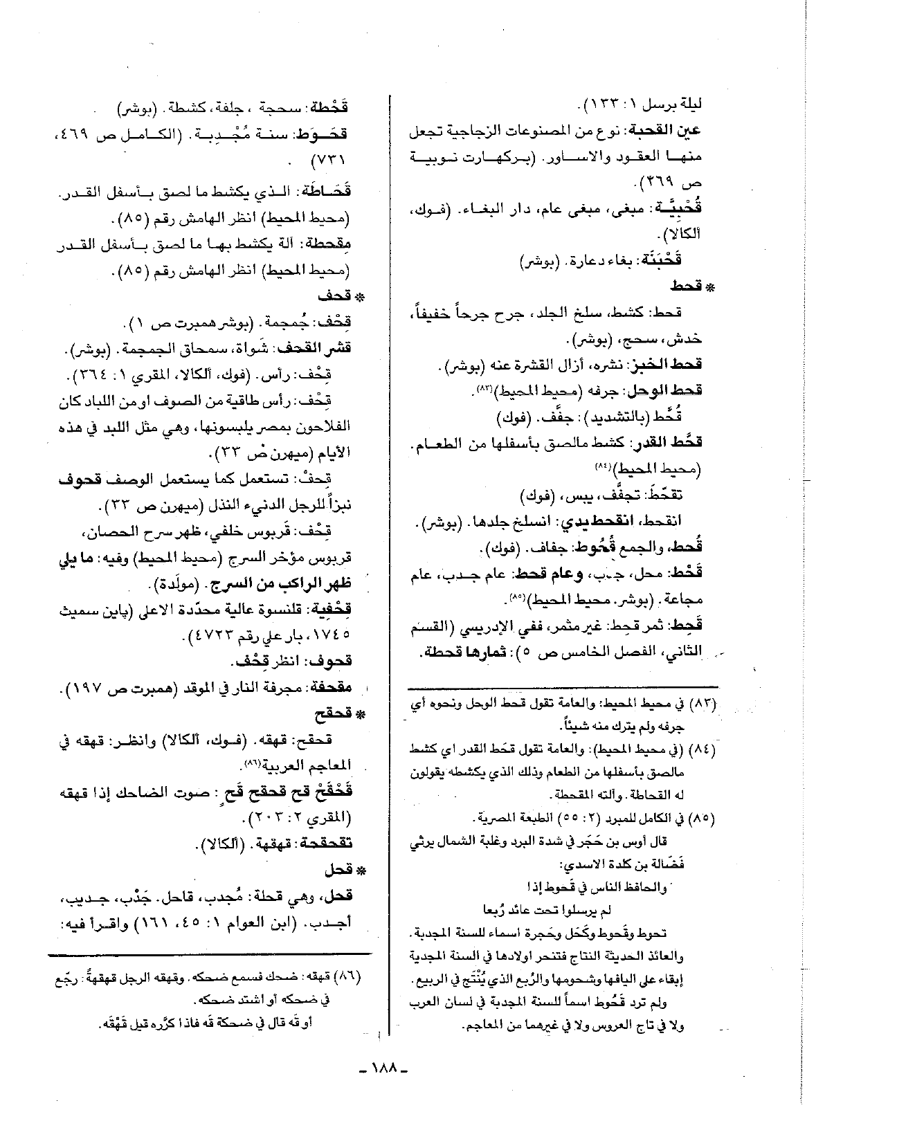 قحف: تستعمل كما يستعمل الوصف قحوف نبزا للرجل الدنيء النذل (ميهرن ص33).
