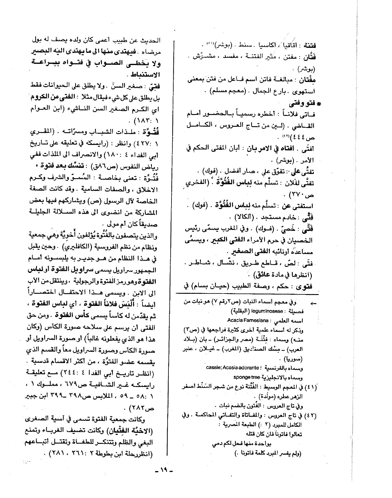 فتوة: تعنى بخاصة: السمو والشرف وكرم الأخلاق، والصفات السامية، وقد كانت الصفة الخاصة لآل الرسول (صلى الله عليه وسلم) ويشاركهم فيها بعض المشاركة من انضوى إلى هذه السلالة الجليلة صديقاً كان أم مولى.