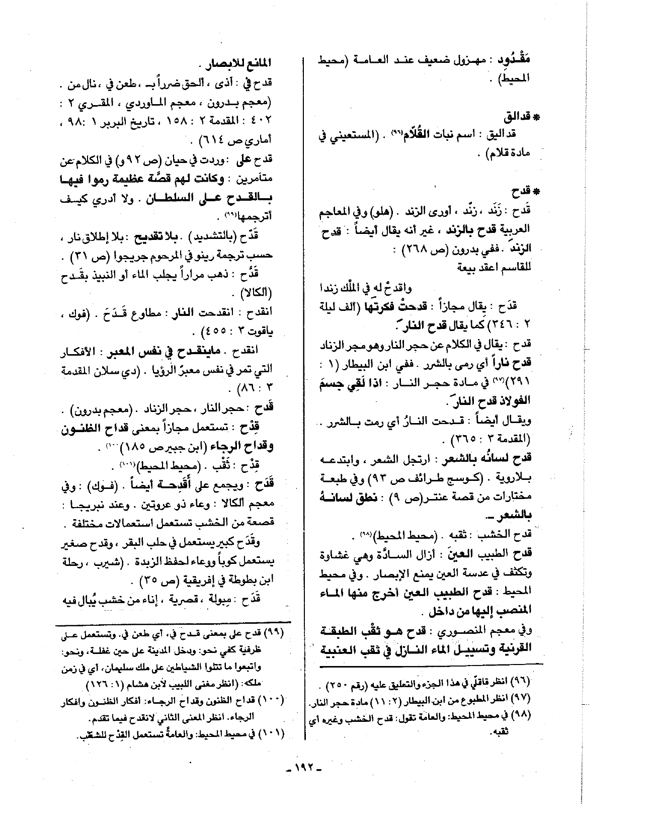 • قدح: قدح: زند، أورى الزند. (هلو) وفي المعاجم العربية قدح بالزند، غير إنه يقال أيضا: قدح الزند. ففي بدرون (ص268):