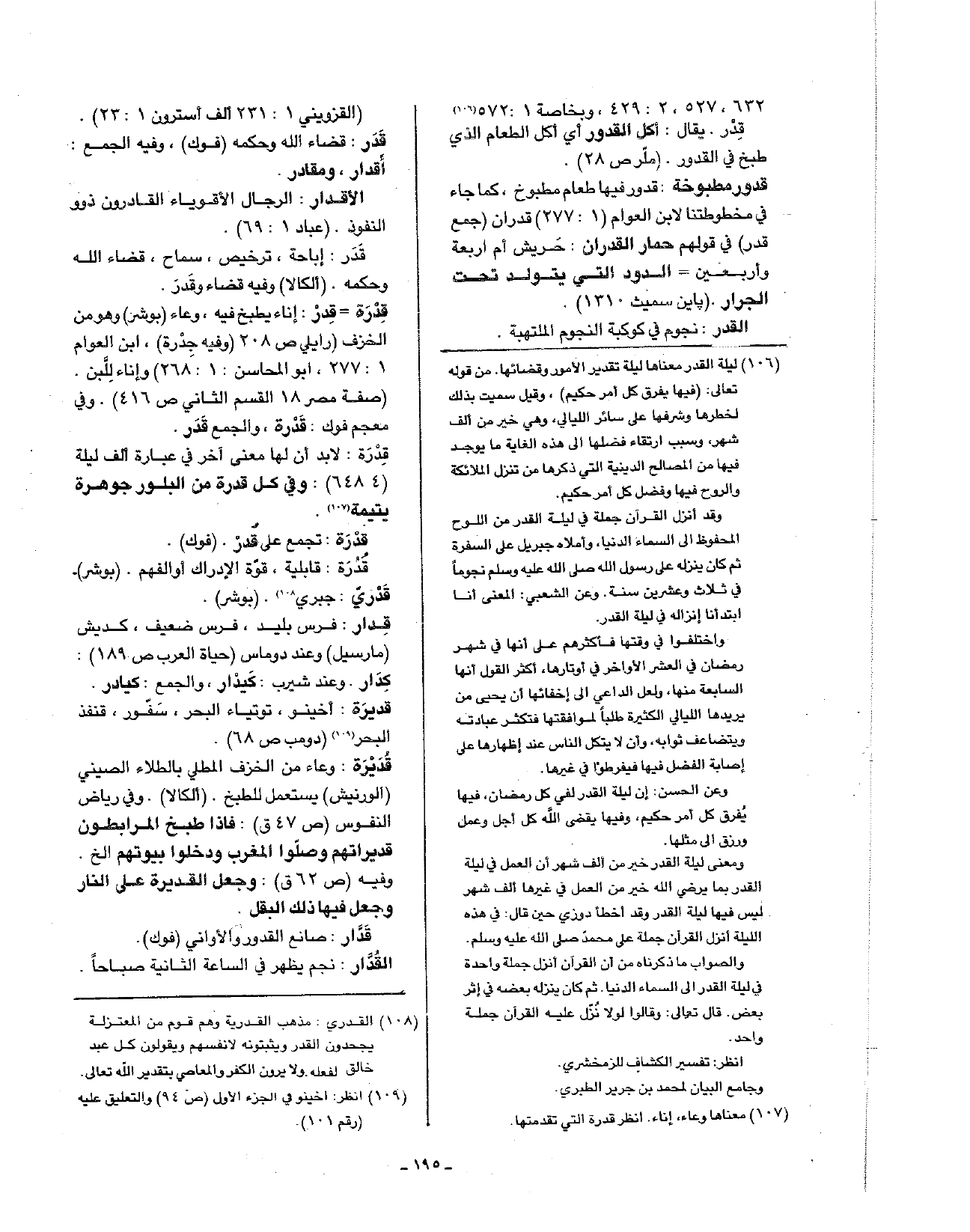 (القزويني 1: 231 ألف استرون 1: 23). قدر: قضاء الله وحكمه (فوك)، وفيه الجمع: أقدار، ومقادر.