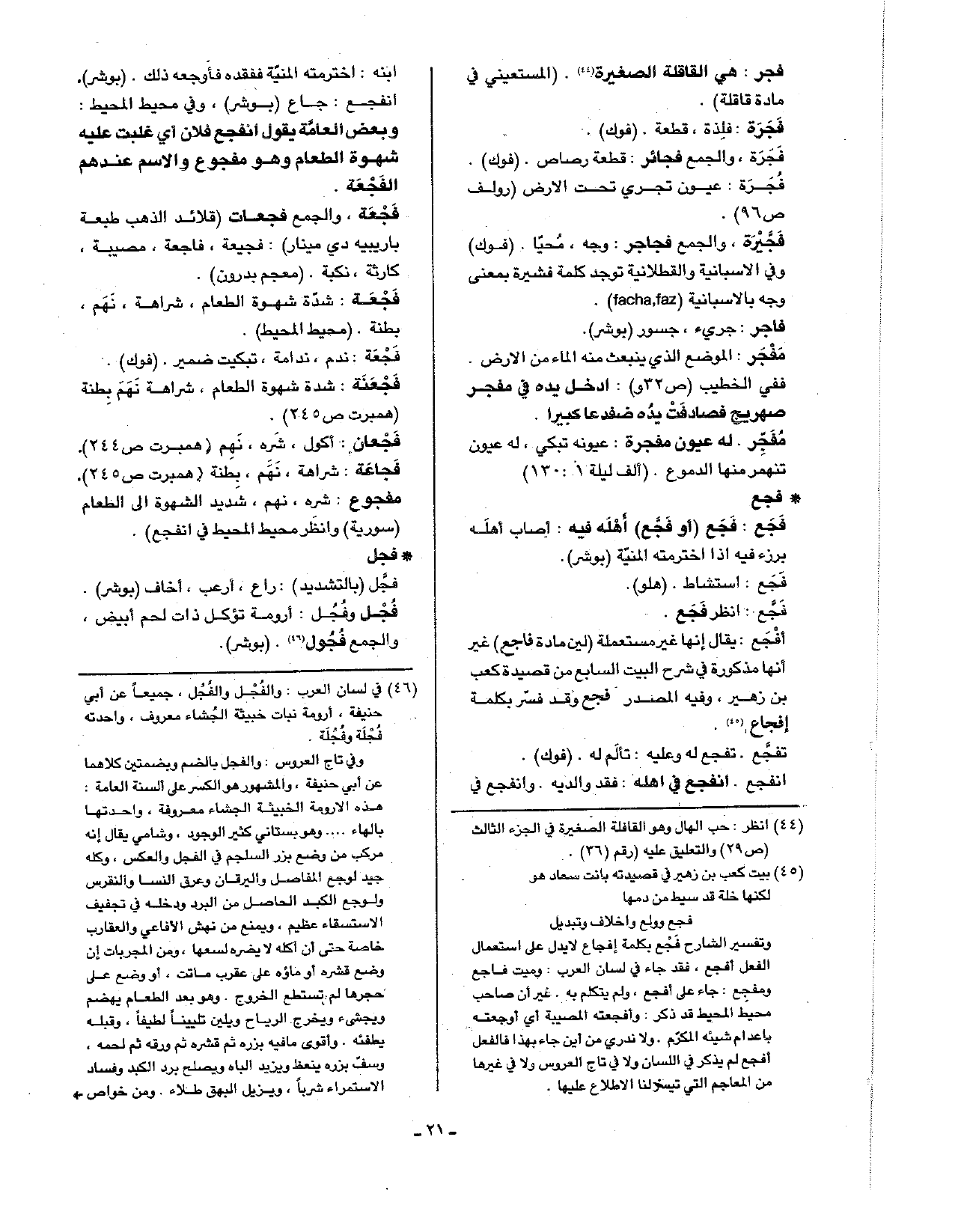 أفجع: يقال إنها غير مستعملة (لين مادة فاجع) غير أنها مذكورة في شرح البيت السابع من قصيدة كعب بن زهير، وفيه المصدر فجع وقد فسر بكلمة إفجاع.