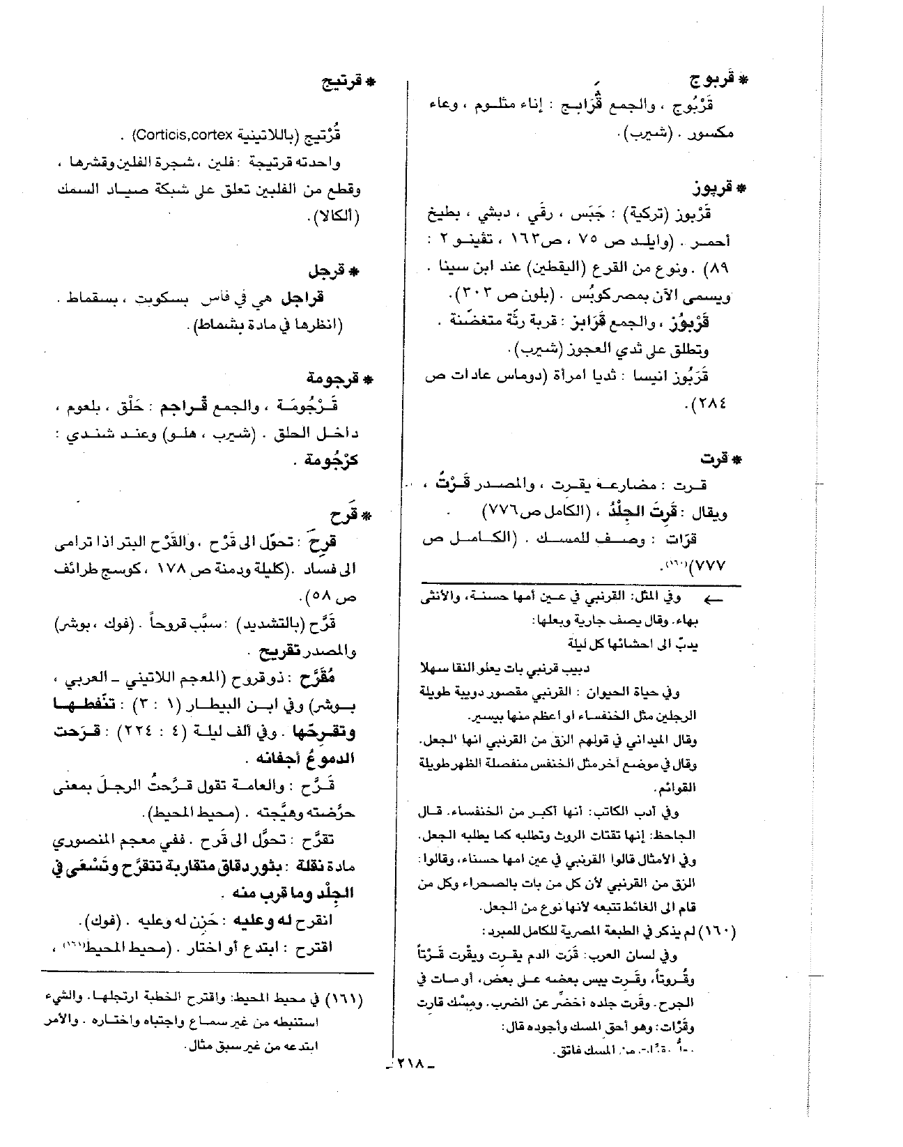 • قرح: قرح: تحول إلى قرح، والقرح البتر إذا ترامى إلى فساد. (كليلة ودمنة ص178، كوسج طرائف ص58).