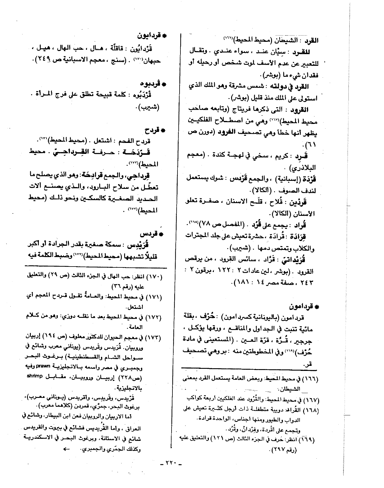 القرود: التي ذكرها فريتاج (وتابعه صاحب محيط المحيط) وهي من اصطلاح الفلكيين يظهر أنها خطأ وهي تصحيف القرود (دورن ص61).