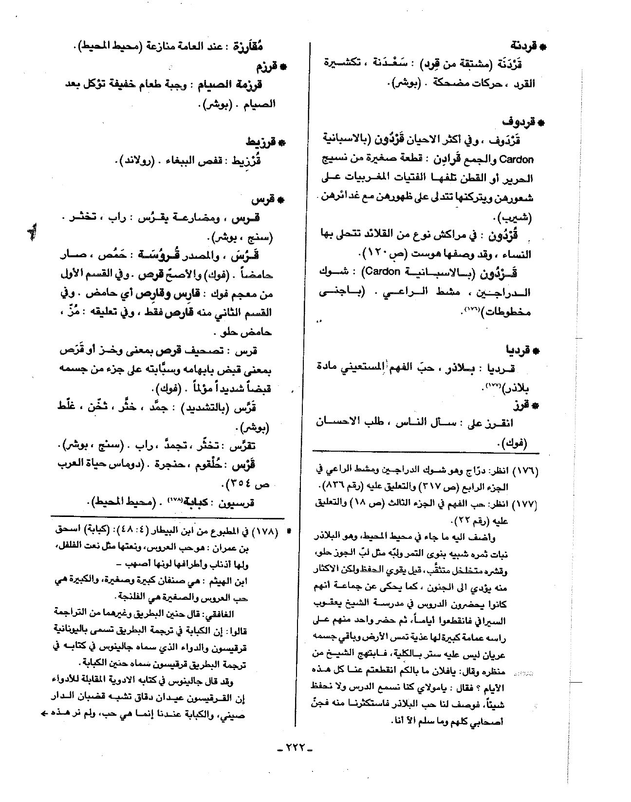 • قردوف: قردوف، وفي أكثر الأحيان قردون (بالأسبانية Cardon والجمع قرادن: قطعة صغيرة من نسيج الحرير أو القطن تلفها الفتيات المغربيات على شعورهن ويتركنها تتدلى على ظهورهن مع غدائرهن (شيرب).
