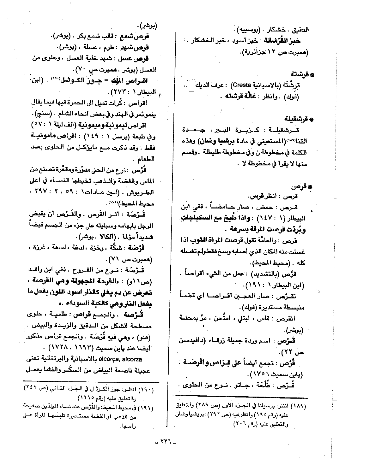 • قرشقيلة: قرشقيلة: كزبرة البير، جعدة القنا (المستعيني في مادة برشيا وشان) وهذه الكلمة في مخطوطة ن وفي مخطوطة طليطلة. وقسم منها لا يقرأ في مخطوطة لا.