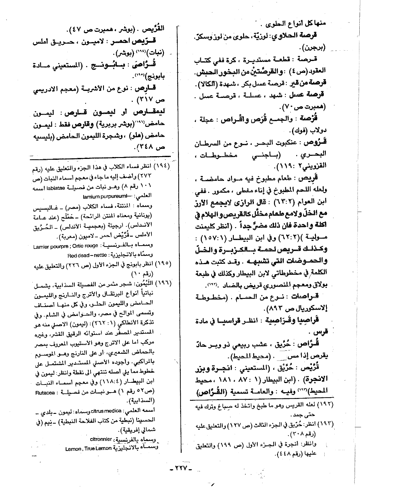 ليمقارص أو ليمون قارص: ليمون حامض (بوشر بربرية) وقارص فقط: ليمون حامض (هلو)، وشجرة الليمون الحامض (بليسيه ص348).
