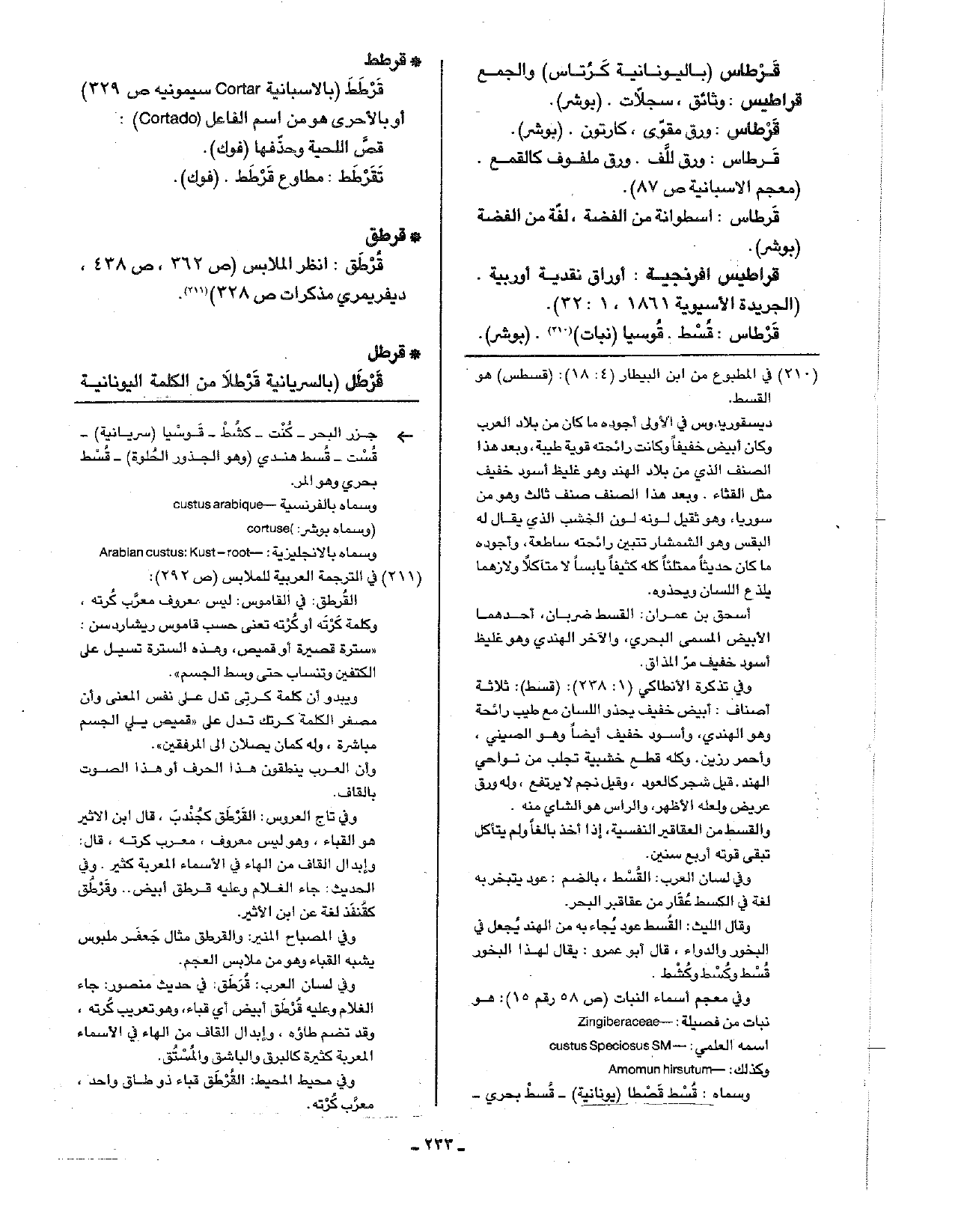 قرطاس: قسط. قوسيا (نبات). (بوشر).