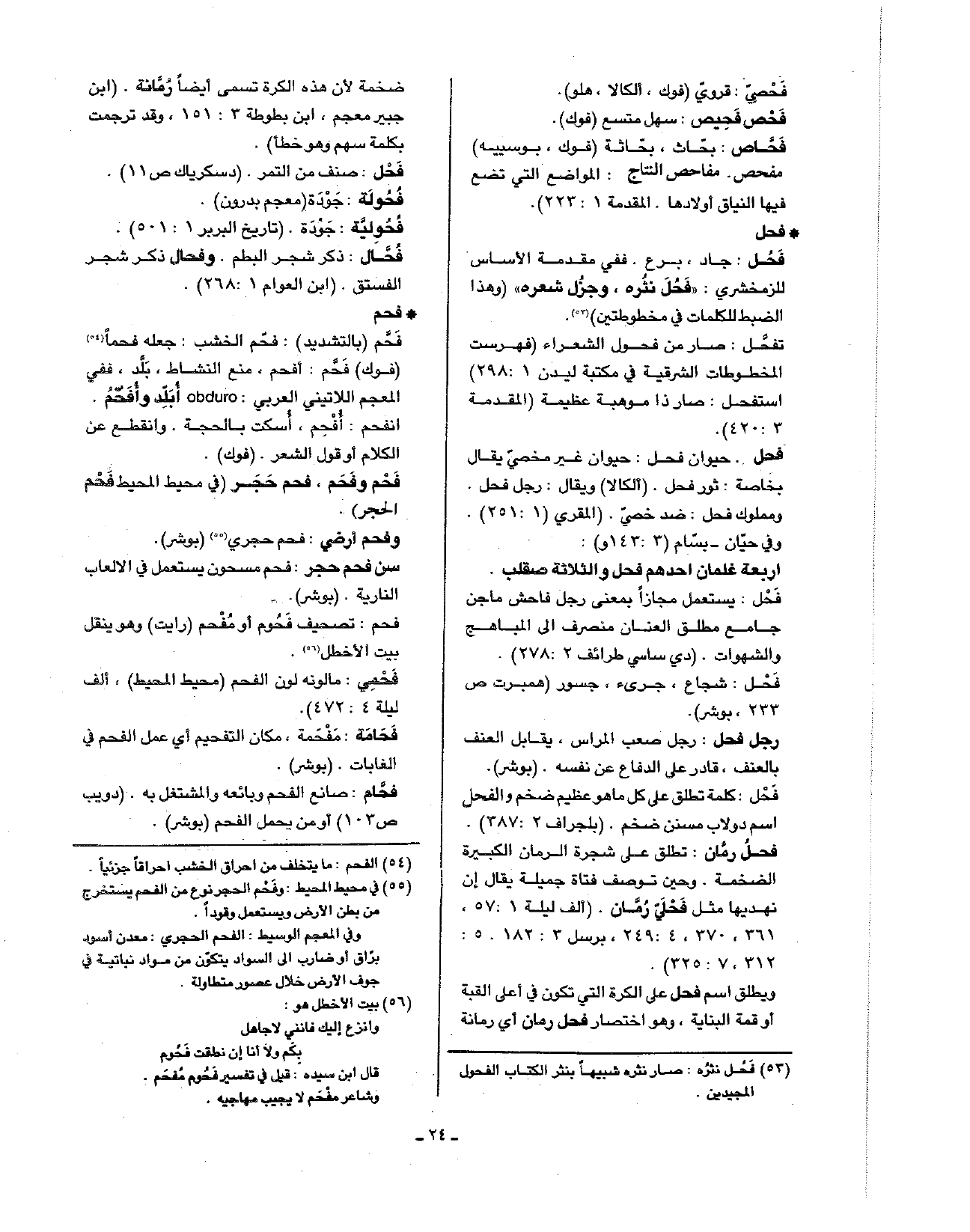 • فحم: فحم (بالتشديد): فحم الخشب: جعله فحماً (فوك) فحم: أفحم، منع النشاط، بلد، ففي المعجم اللاتيني العربي: obduro أبلد وأفحم. أنفحم: أفحم، أسكت بالحجة. وانقطع عن الكلام أو قول الشعر. (فوك).