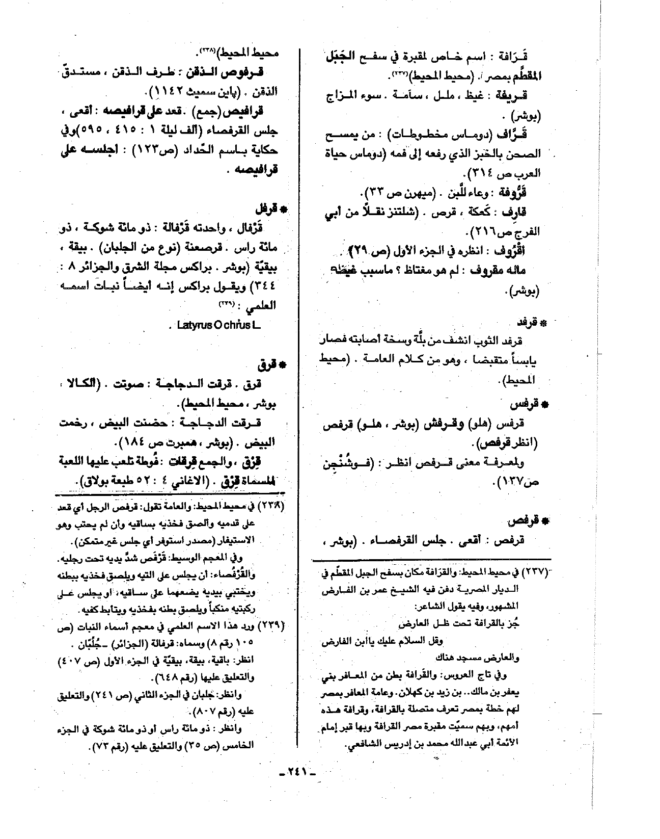 ولمعرفة معنى قرفص انظر: (فوشنجن ص137).