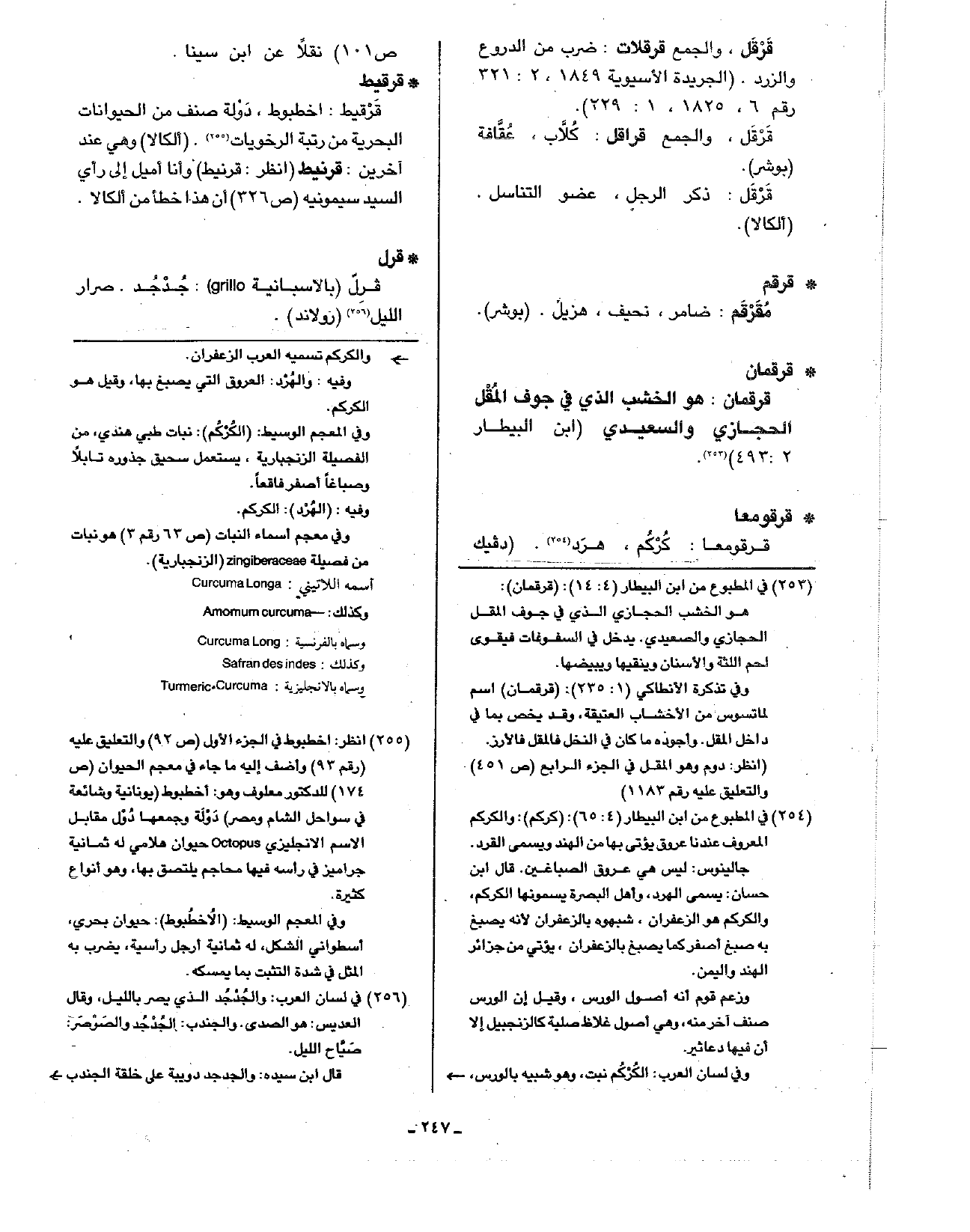 • قرقمان: قرقمان: هو الخشب الذي في جوف المقل الحجازي والسعيدي (ابن البيطار 2: 493) قرقومعا قرقومعا: كركم، هرد. (دفيك ص101) نقلا عن ابن سينا.