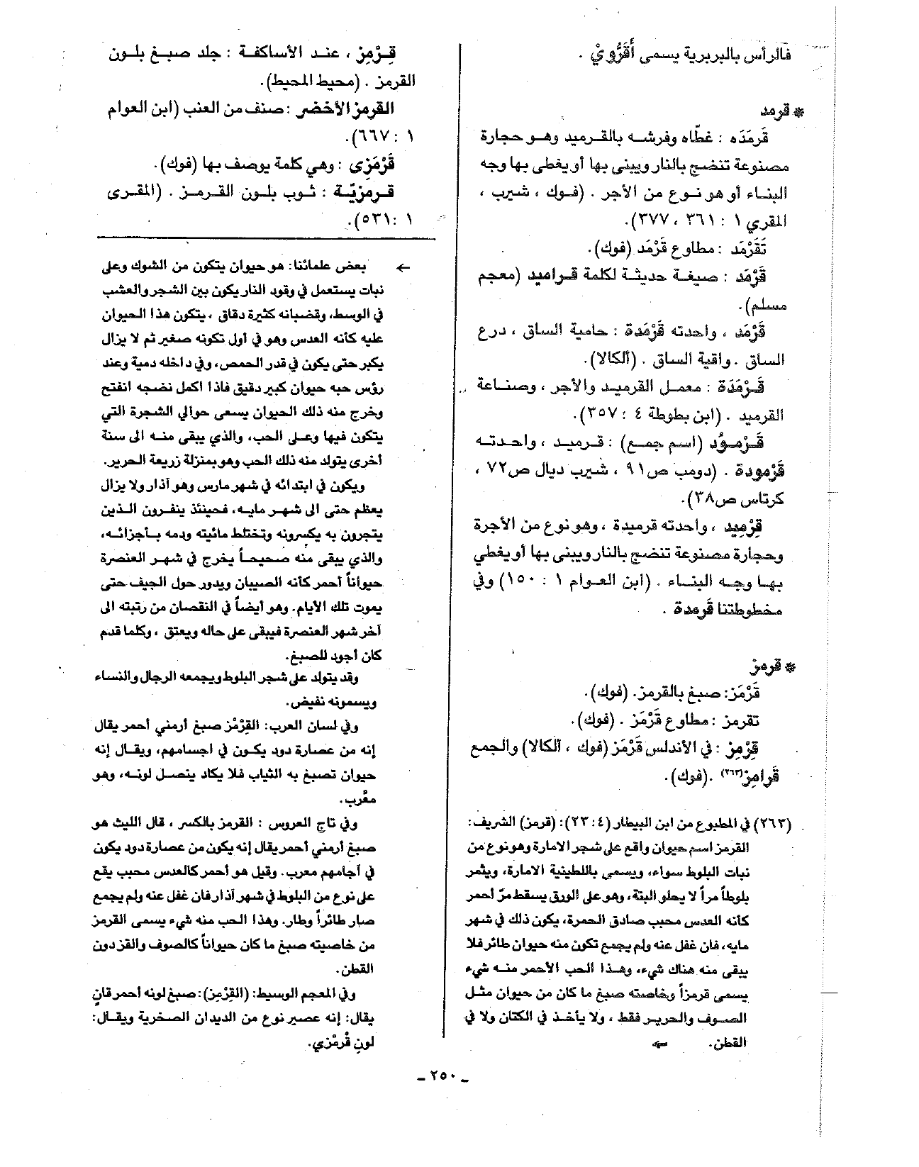 قرمز: في الأندلس قرمز (فوك، الكالا) والجمع قرامز. (فوك).