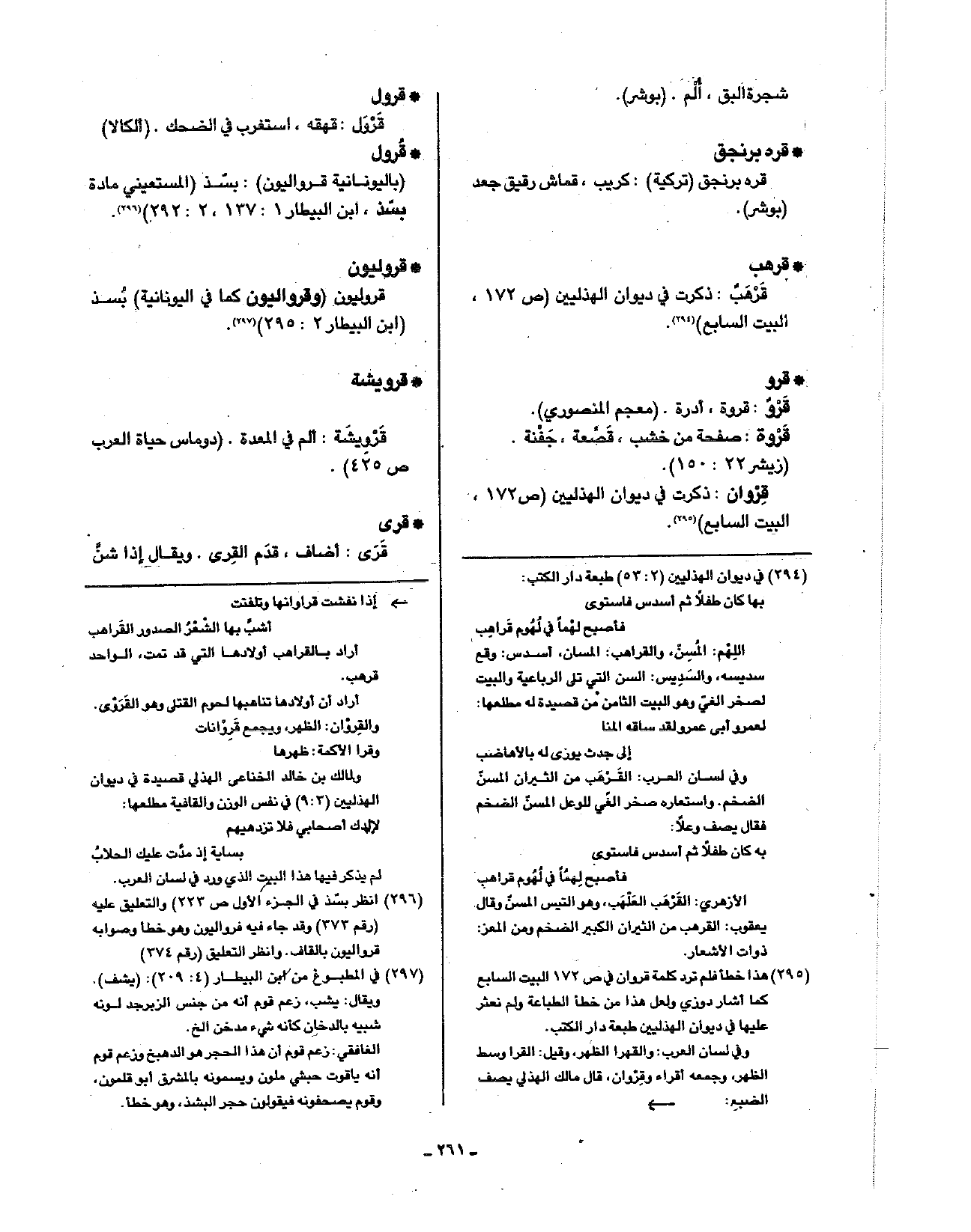 • قرهب: قرهب: ذكرت في ديوان الهذليين (ص172، البيت السابع).
