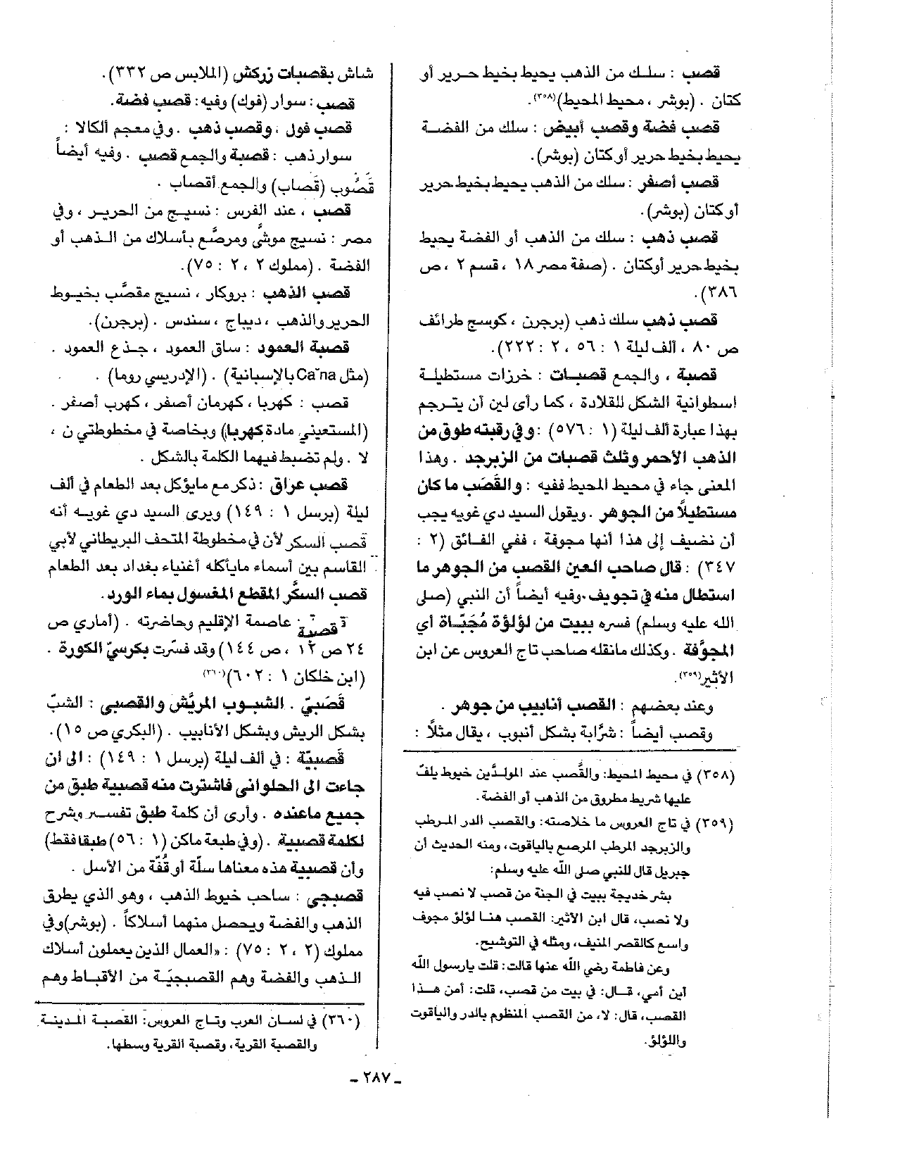 قصب، عند الفرس: نسيج من الحرير، وفي مصر: نسيج موشى ومرصع بأسلاك من الذهب أو الفضة. (مملوك 2، 2: 75).
