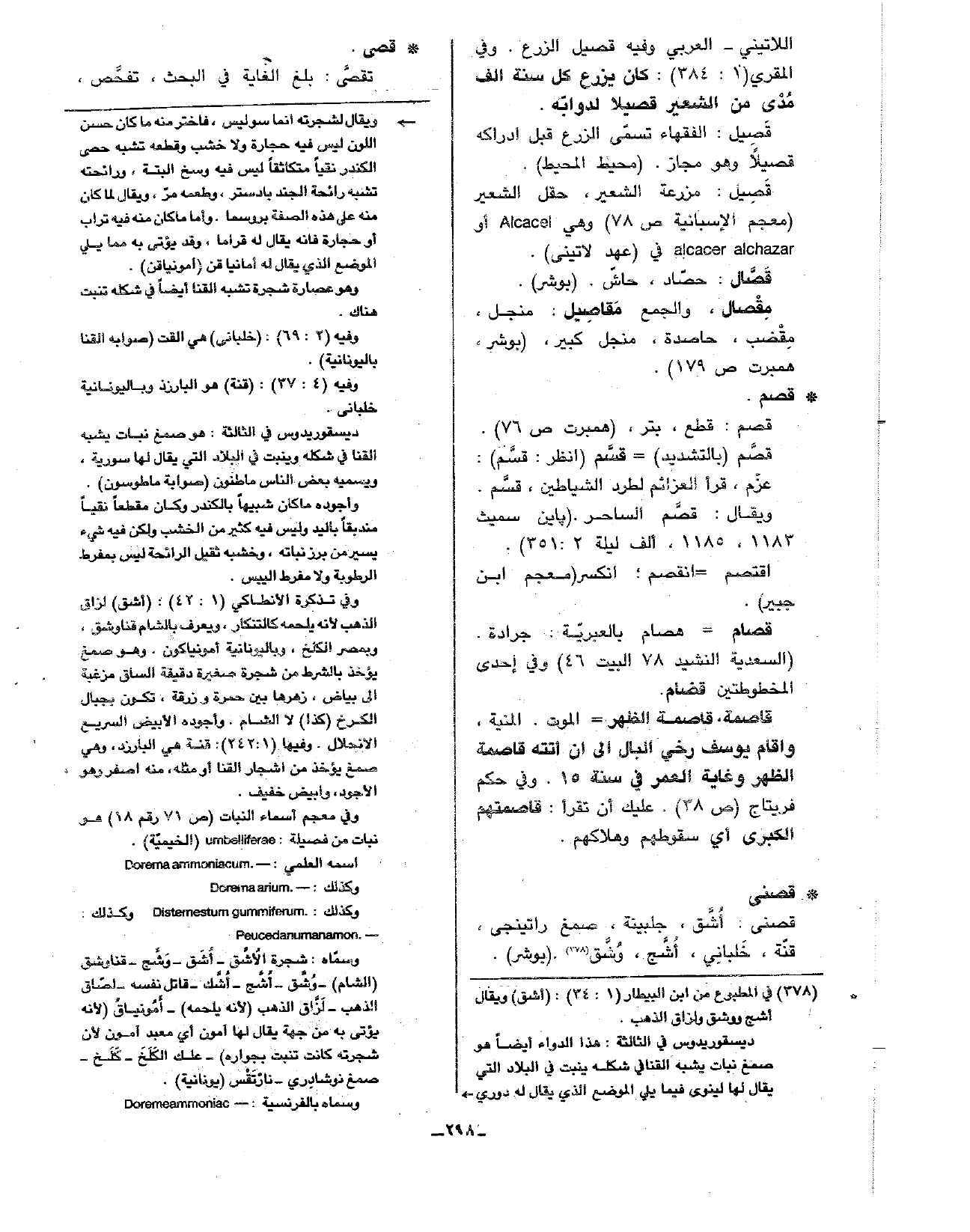 اللاتيني- العربي وفيه قصيل الزرع. وفي المقري (1: 384): كان يزرع كل سنة ألف مدى من الشعير قصيلا لدوابه.