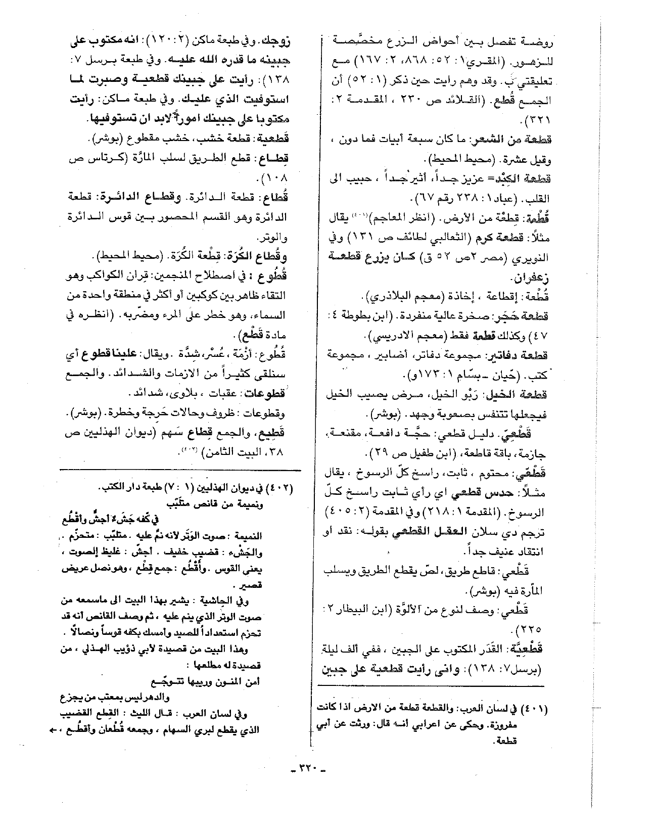 قطعة: قطعة من الأرض. (انظر المعاجم) يقال مثلا: قطعة كرم (الثعالبي لطائف ص131) وفي النويري (مصر 2 ص52 ق) كان يزرع قطعة زعفران.