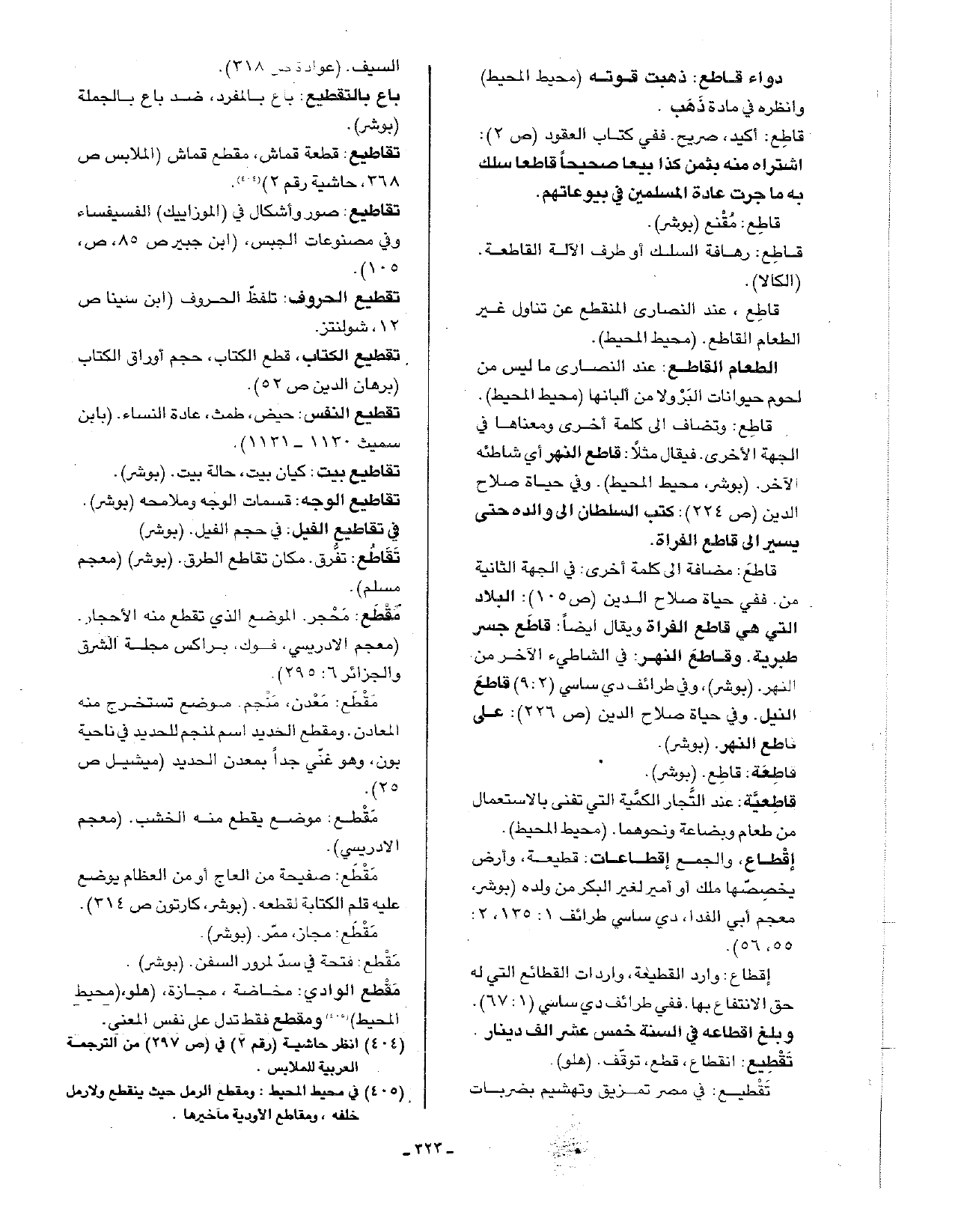 قاطع: وتضاف إلى كلمة أخرى ومعناها في الجهة الأخرى. فيقال مثلا: قاطع النهر أي شاطئه الآخر. (بوشر، محيط المحيط). وفي حياة صلاح الدين (ص224): كتب السلطان إلى والده حتى يسير إلى قاطع الفراة.