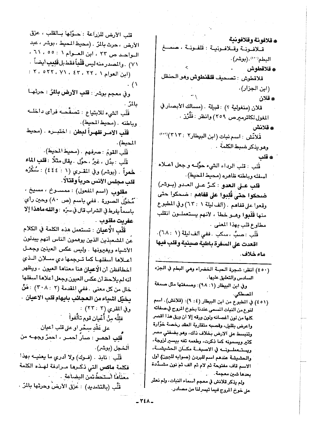 مقلوب (اسم المفعول): ممسوخ، مسيخ، مخول الصورة. ففي باسم (ص80) وحين رأي باسما يفرط في الشراب قال في سره: والله ما هذا إلا عفريت مقلوب.