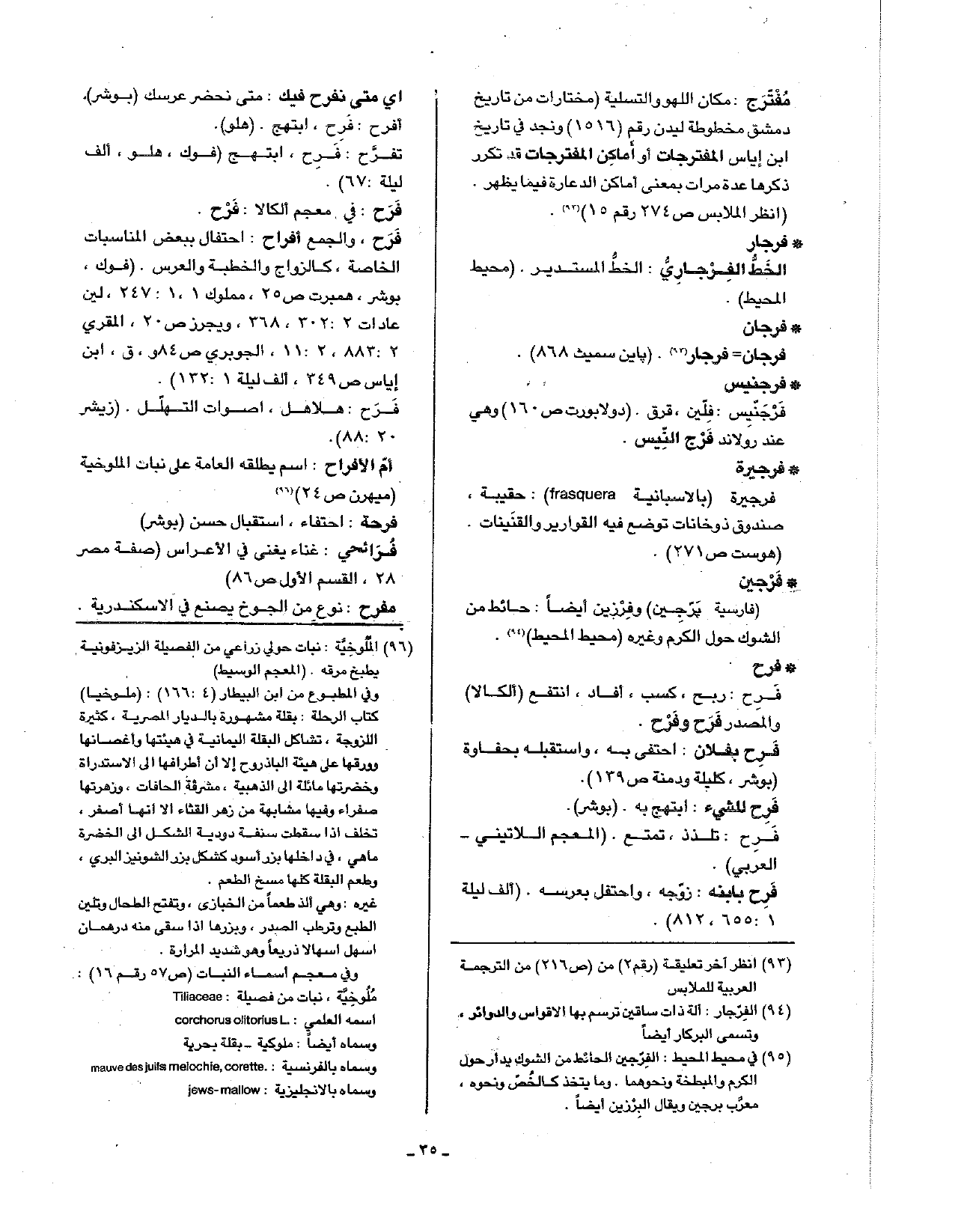 • فرجنيس: فرجنيس: فلين، قرق. (دولا بورت ص160) وهي عند رولاند فرج النيس.