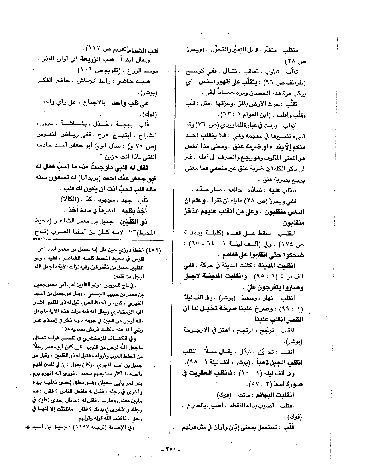 انقلب: وردت في عبارة للماوردي (ص76) وقد أسيء تفسيرها في معجمه وهي: فلا ينقلب أحد منكم إلا بفداء أو ضربة عنق. ومعنى هذا الفعل هو المعنى المألوف وهو رجع وانصرف إلى أهله. غير أن ذكر الكلمتين ضربة عنق غير منطقي فما معنى يرجع بضربه عنق.