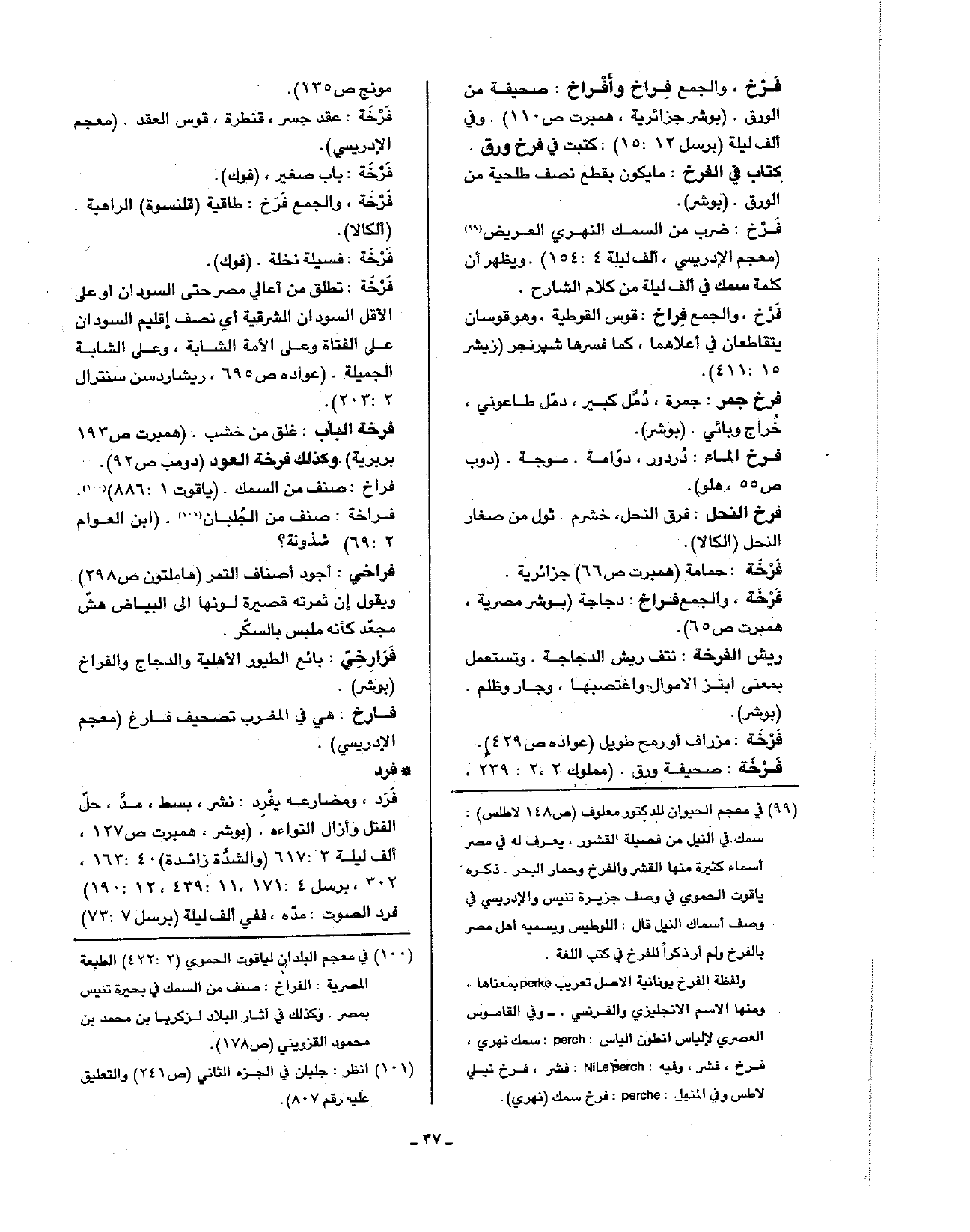 فرخ: ضرب من السمك النهري العريض (معجم الإدريسي، ألف ليلة 154:4). ويظهر أن كلمة سمك في ألف ليلة من كلام الشارح.