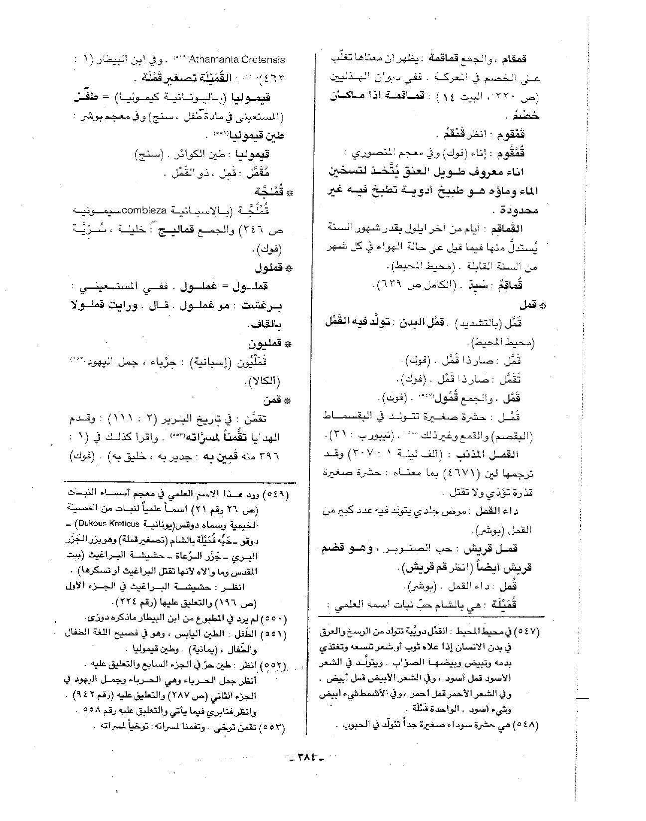 القمل المذنب: (ألف ليلة 1: 307) وقد ترجمها لين (4671) بما معناه: حشرة صغيرة قذرة تؤذي ولا تقتل.