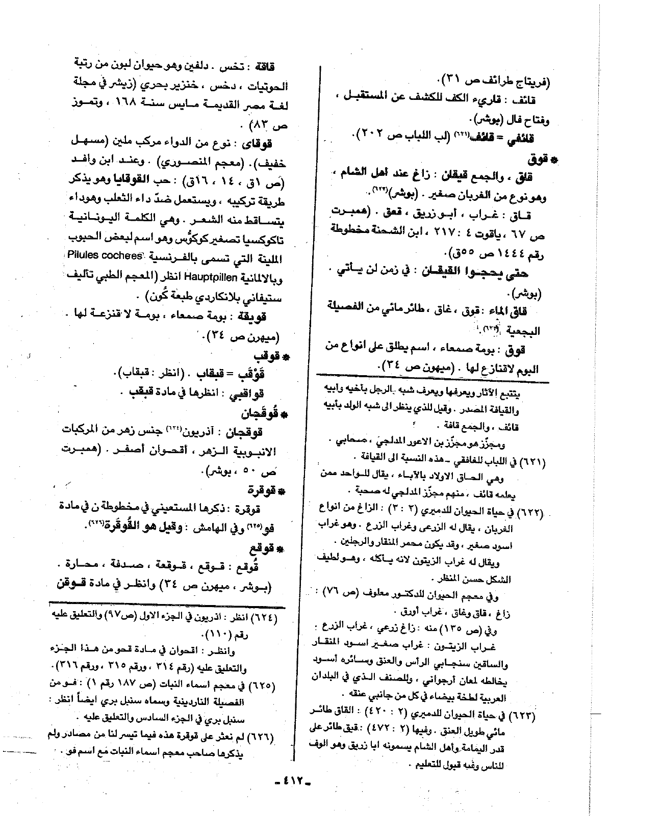 • قوق: قاق، والجمع قيقان: زاغ عند أهل الشام، وهو نوع من الغربان صغير. (بوشر).