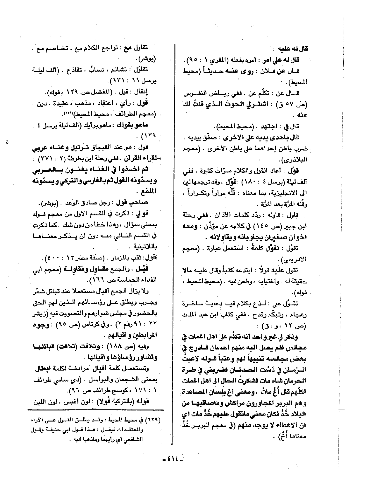 قول: أعاد القول والكلام مرات كثيرة، ففي ألف ليلة (برسل 4: 180): قول، وقد ترجمها لين إلى الإنكليزية، بما معناه: قلة مرارا وتكرارا، وقله المرة بعد المرة.