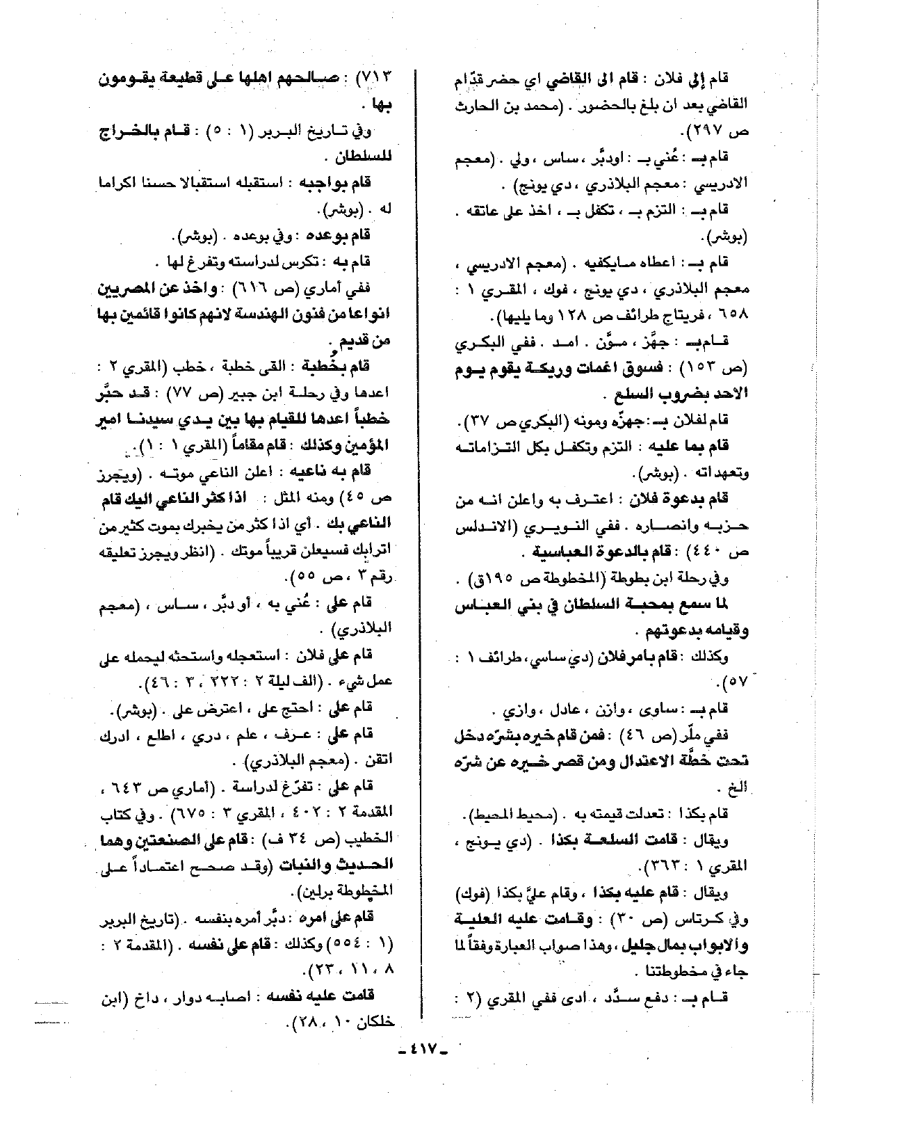 قام ب: أعطاه ما يكفيه. (معجم الإدريسي، معجم البلاذري، دي يونج، فوك، المقري 1: 658، فريتاج طرائف ص128 وما يليها).