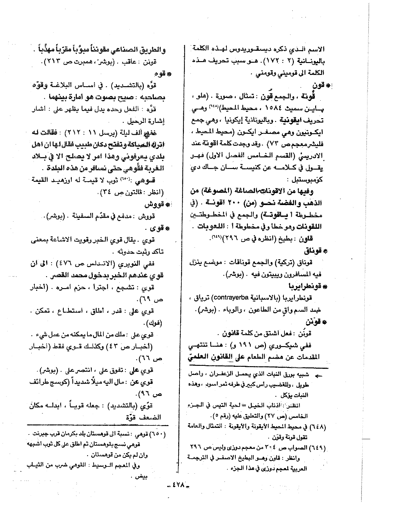 • قون: قونة، والجمع ثون: تمثال، صورة. (هلو، باين يميث 1584، محيط المحيط) وهي تحريف ايقونية. وباليونانية ايكونيا، وهي جمع ايكونيون وهي مصغر ايكون (محيط المحيط، فليشر معجم ص73). وقد وجدت كلمة اقونة عند الإدريسي (القسم الخامس الفصل الأول) فهو يقول في كلامه عن كنيسة سان جاك دي كومبوستبل: وفيها من الاقونات الصاغة (المصوغة) من الذهب والفضة نحو (من) 200 اقونة. (في مخطوطة أياقوتة) والجمع في المخطوطتين اللقونات وهو خطأ وفي مخطوطة أ: اللعوبيات.