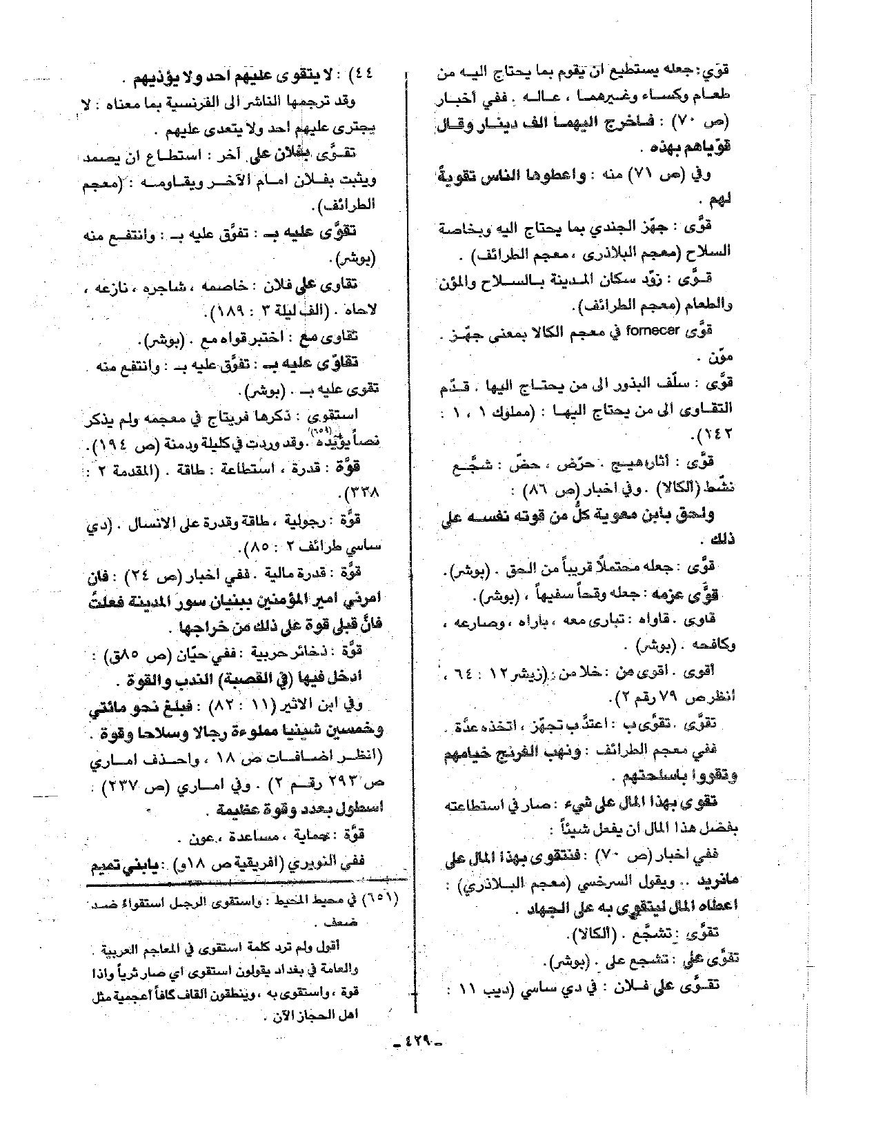 استقوى: ذكرها فريتاج في معجمه ولم يذكر نصا يؤيده. وقد وردت في كليلة ودمنة (ص194).