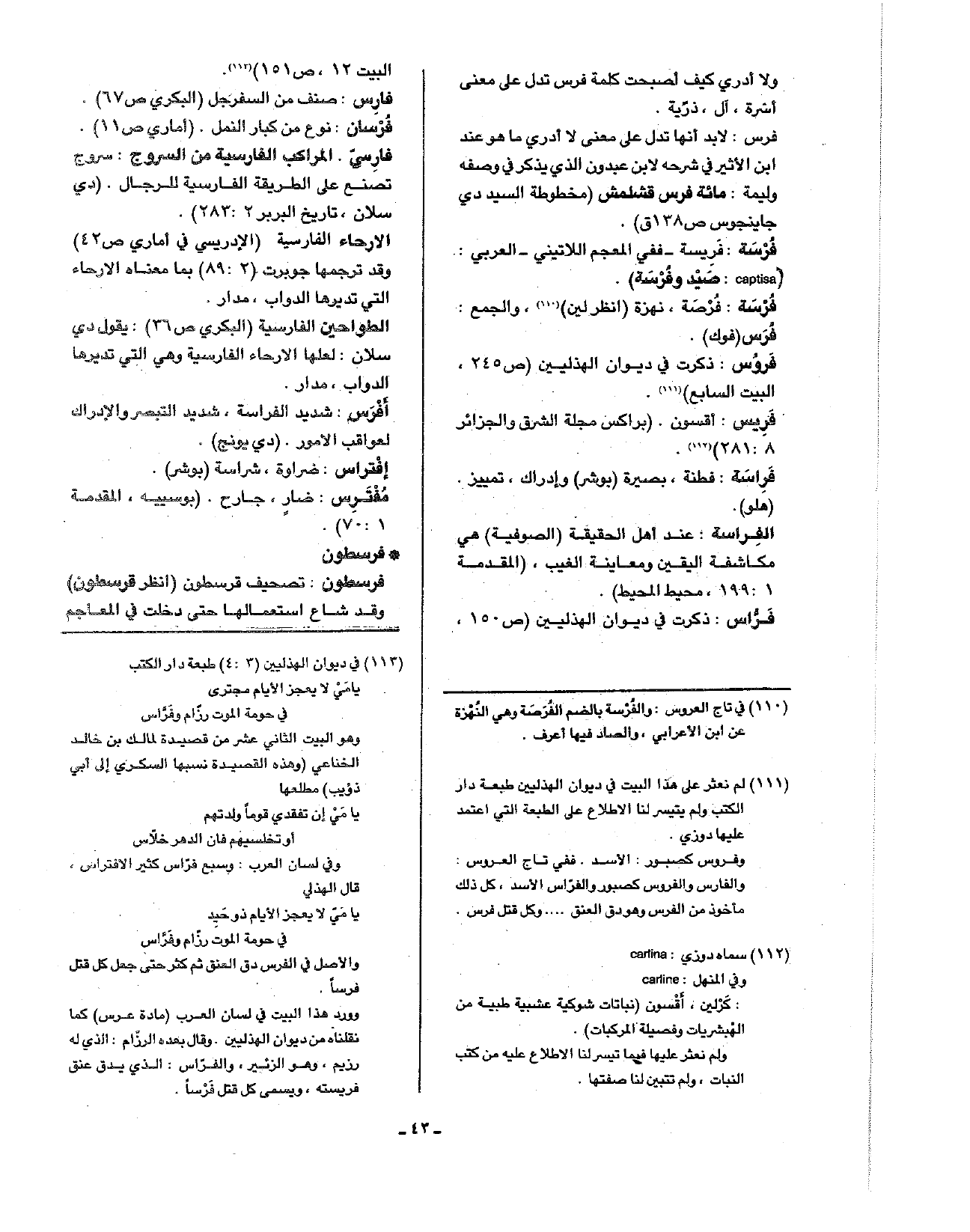 ولا أدري كيف أصبحت كلمة فرس تدل على معنى أسرة، آل، ذرية.