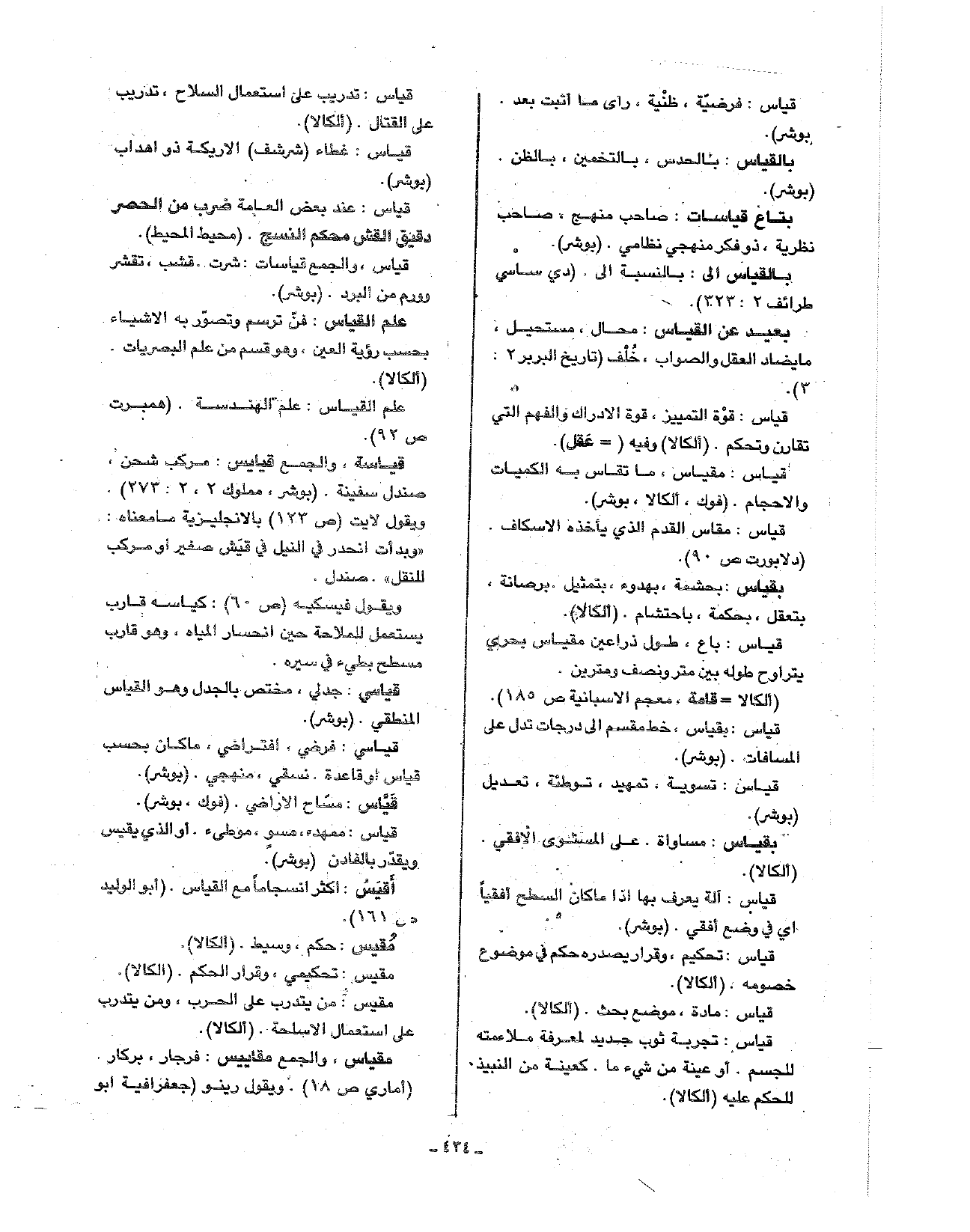 قياس: مقياس، ما تقاس به الكميات والأحجام. (فوك، الكالا، بوشر).